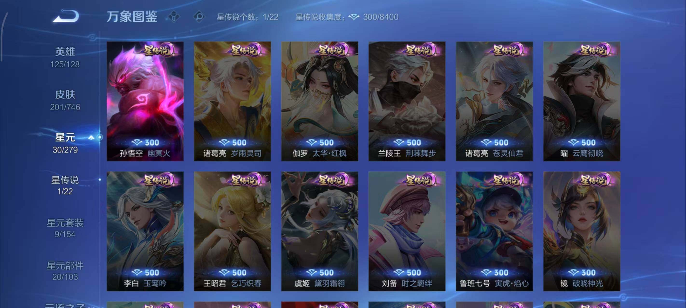 盾山御銮,夏侯惇朔风刀,明世隐疑决卦,老夫子醍醐杖,鬼谷子原初探秘者,狄仁杰万华元夜,程咬金演武夺筹,钟馗驱傩正仪,苏烈千军破阵,钟馗神迹守卫,鲁班七号狮舞东方,元歌云间偶戏,弈星混沌棋,达摩沙漠行僧,兰陵王金庭之子,沈梦溪大漠名商,李元芳云中旅人,桑启海盐诗旅,裴擒虎擒涛扼浪,鲁班大师探海日志,张良古海寻踪