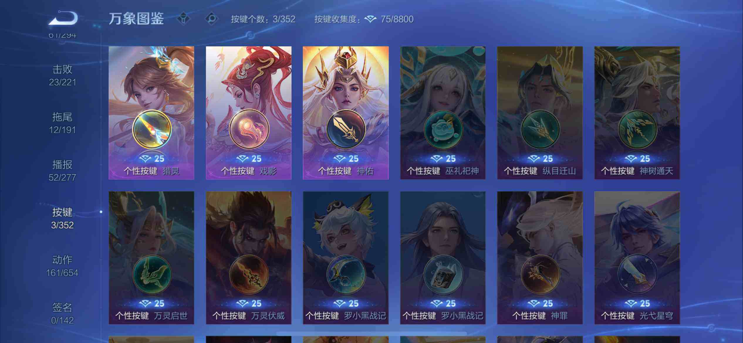 裴擒虎李小龙,上官婉儿梁祝,貂蝉逐梦之音,黄忠烈魂,韩信飞衡,裴擒虎天狼狩猎者,上官婉儿天狼绘梦者,伽罗天狼溯光者,百里玄策白虎志,王昭君凤凰于飞,虞姬霸王别姬,孙悟空大圣娶亲,李白诗剑行,桑启鸣野蒿,女娲愿照·千秋盛