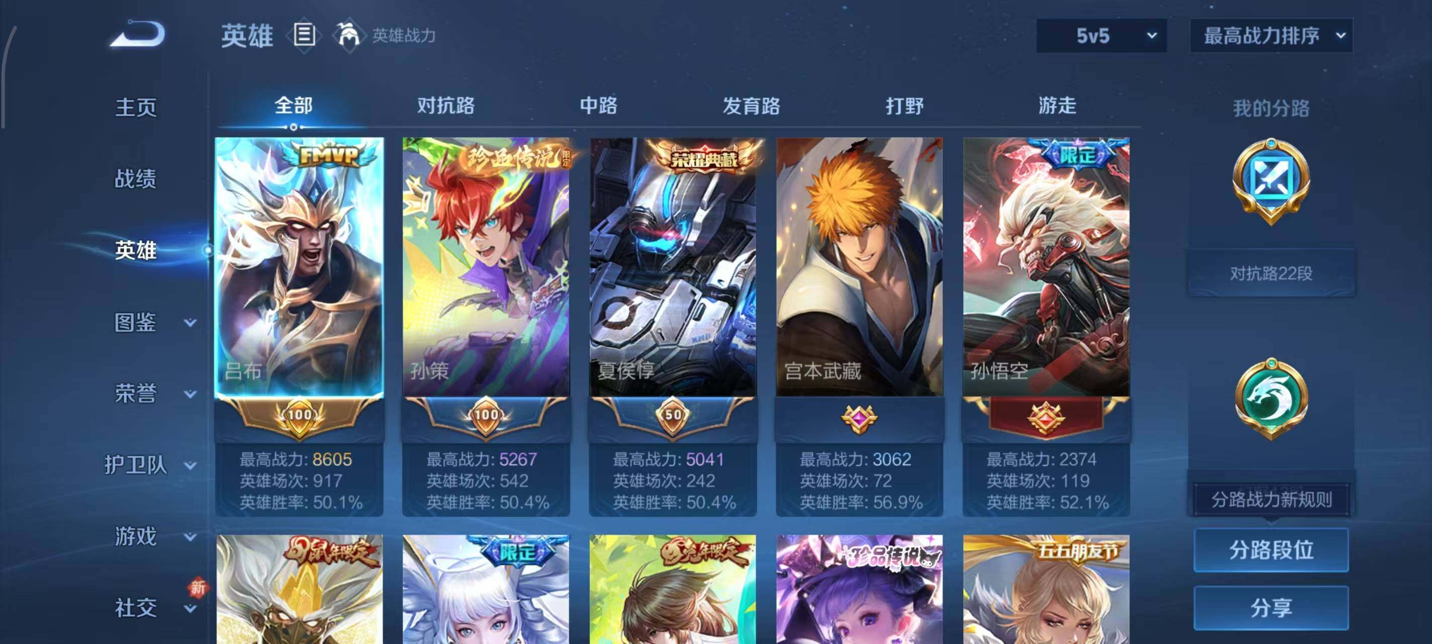 - PX_2082801-贵族等级: V3 英雄数: 68 皮肤数: 39 传说皮: 胖达荣荣 限定皮: 山海·玄木吟,鸣野蒿,愿照·众生和