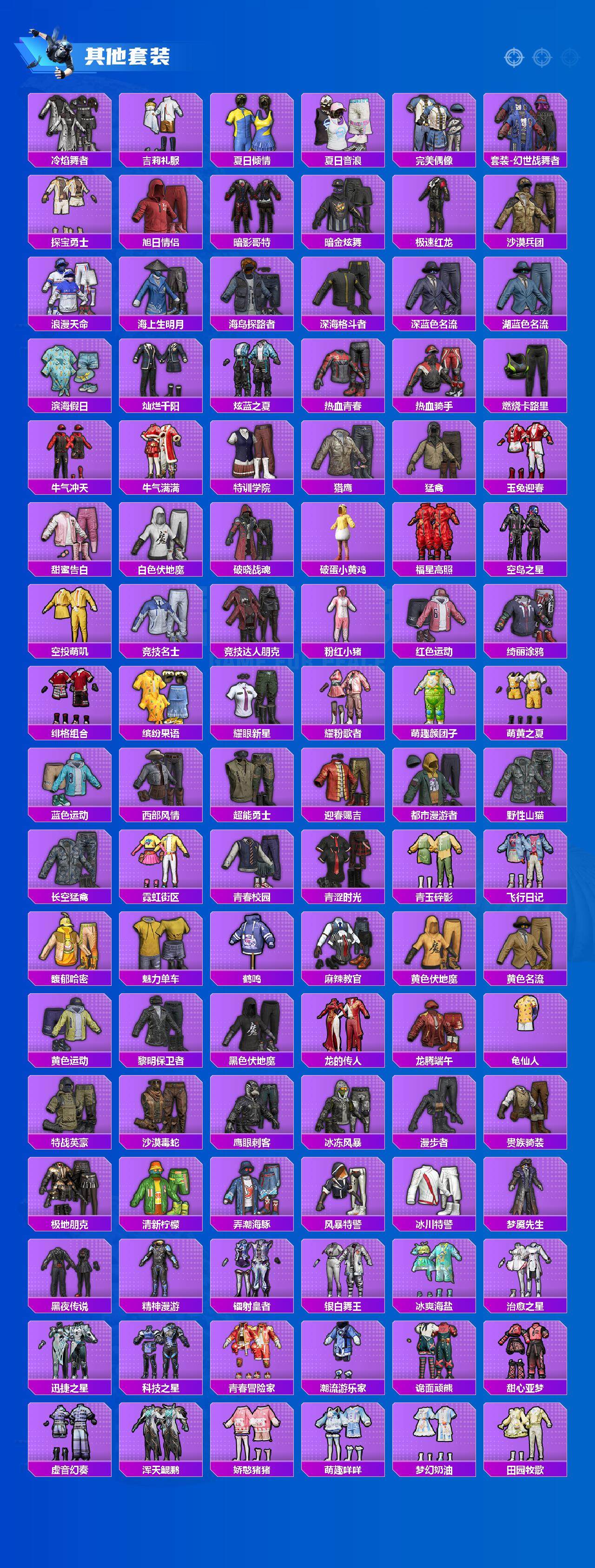 套装-浪漫天命,角色-军刀雅典娜,忍者信条套装,套装-龟仙人,套装-暗影哥特,套装-粉红小猪,角色-8号机,角色-Mark.06,套装-极速红龙,套装-破蛋小黄鸡,套装-漫步者,套装-弄潮海豚,套装-冰爽海盐,套装-诡面顽熊