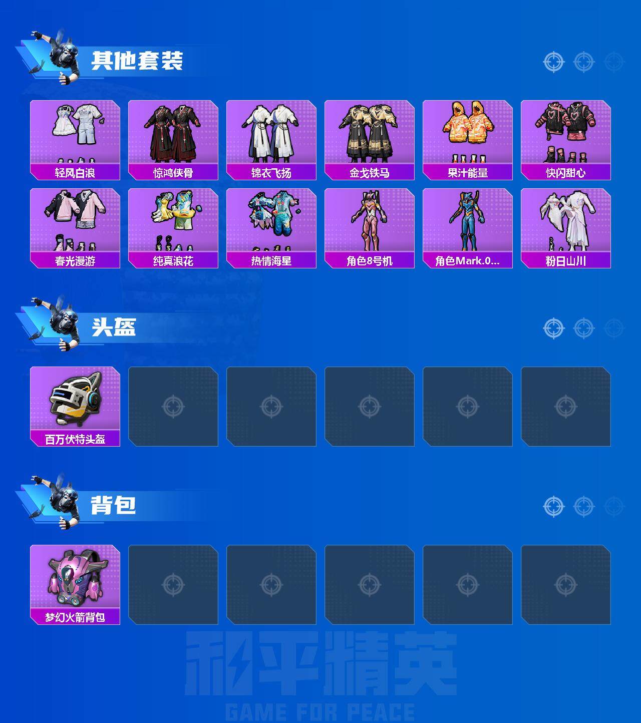 - PX_2088479- 可二次 安卓手Q-3王牌印记-7粉装-3特效枪-6载具-81169热力值-174套装-213枪皮-0卓越印记-0传奇印记 【7粉装】,梦幻火箭,流星咚咚,酣梦娃娃,幻彩马卡龙,银刃赛罗,铁血龙王,粉色回忆, 【3特效枪】,M416-五爪金龙-6级,AUG-星之彼岸-5级,VSS-烈焰拳霸-4级, 【7稀有紫装】,浪漫天命,雪山精英,浪漫波比,暗夜魅影,金羽特工,零款战斗服,