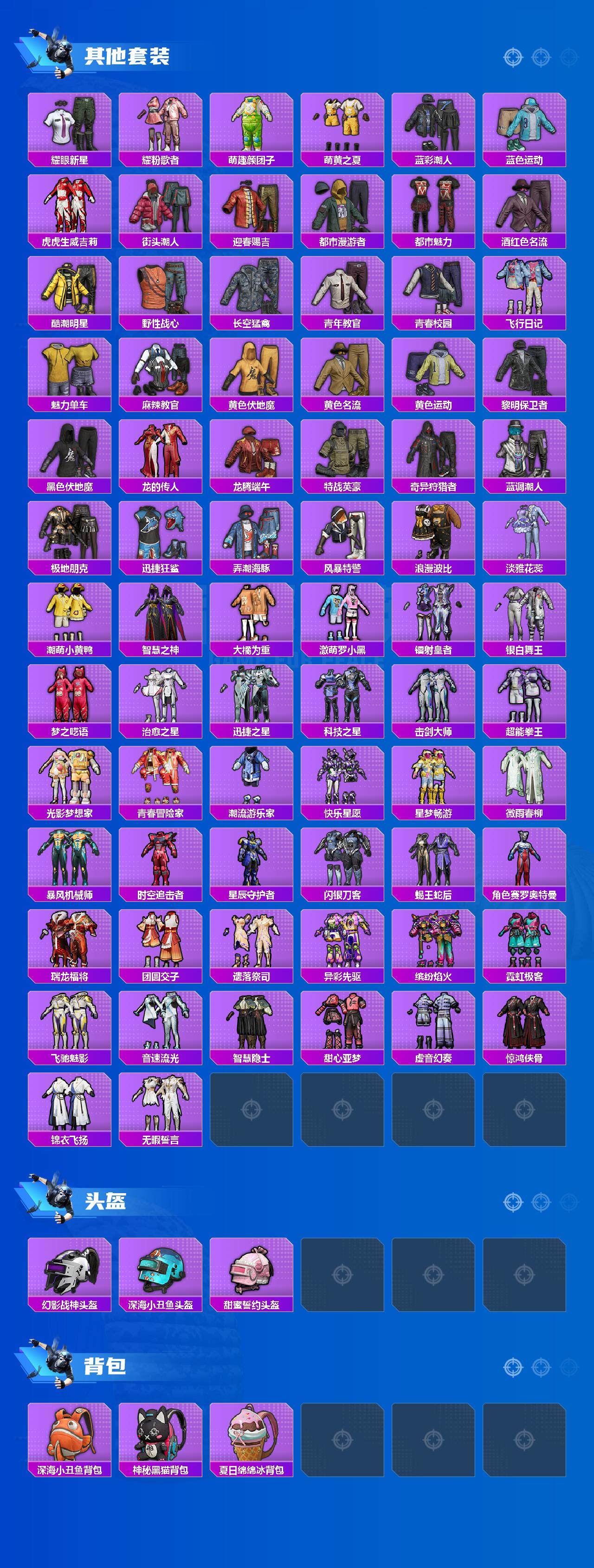 套装-浪漫天命,套装-金羽特工,套装-暗影哥特,套装-粉红小猪,套装-极速红龙,套装-狂沙舞者,套装-破蛋小黄鸡,套装-弄潮海豚,套装-梦之呓语,角色-赛罗奥特曼,套装-瑞龙福将,套装-团圆交子