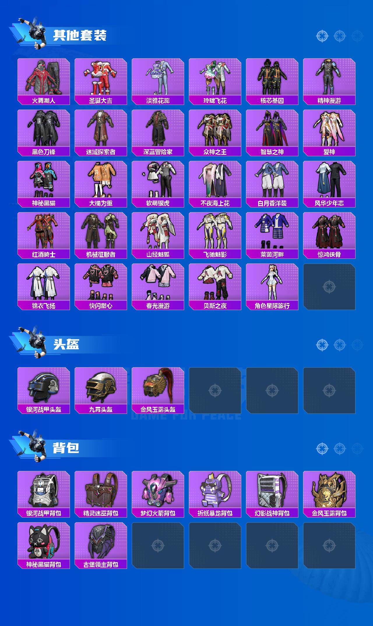 套装-龟仙人,套装-暗影哥特,套装-粉红小猪,套装-破蛋小黄鸡,套装-雪山精英,套装-黑色刀锋,爱神套装,不夜海上花套装,白月香洋装套装,风华少年志套装,套装-山经魅狐