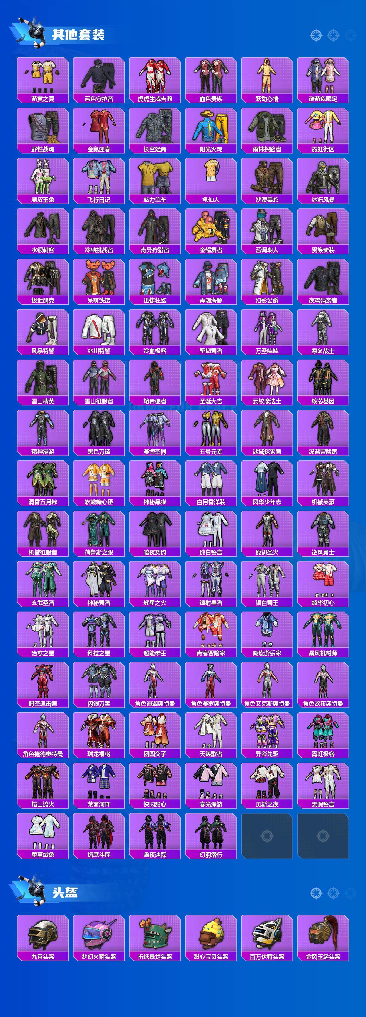 套装-浪漫天命,套装-龟仙人,套装-破蛋小黄鸡,套装-水银刺客,套装-弄潮海豚,套装-雪山精英,套装-黑色刀锋,赛博空间套装,套装-软嫩糖心蛋,白月香洋装套装,风华少年志套装,套装-机械英豪,套装-暗夜契约,套装-纯白誓言,套装-玄武圣者,套装-韶华初心,角色-迪迦奥特曼,角色-赛罗奥特曼,套装-瑞龙福将,套装-团圆交子