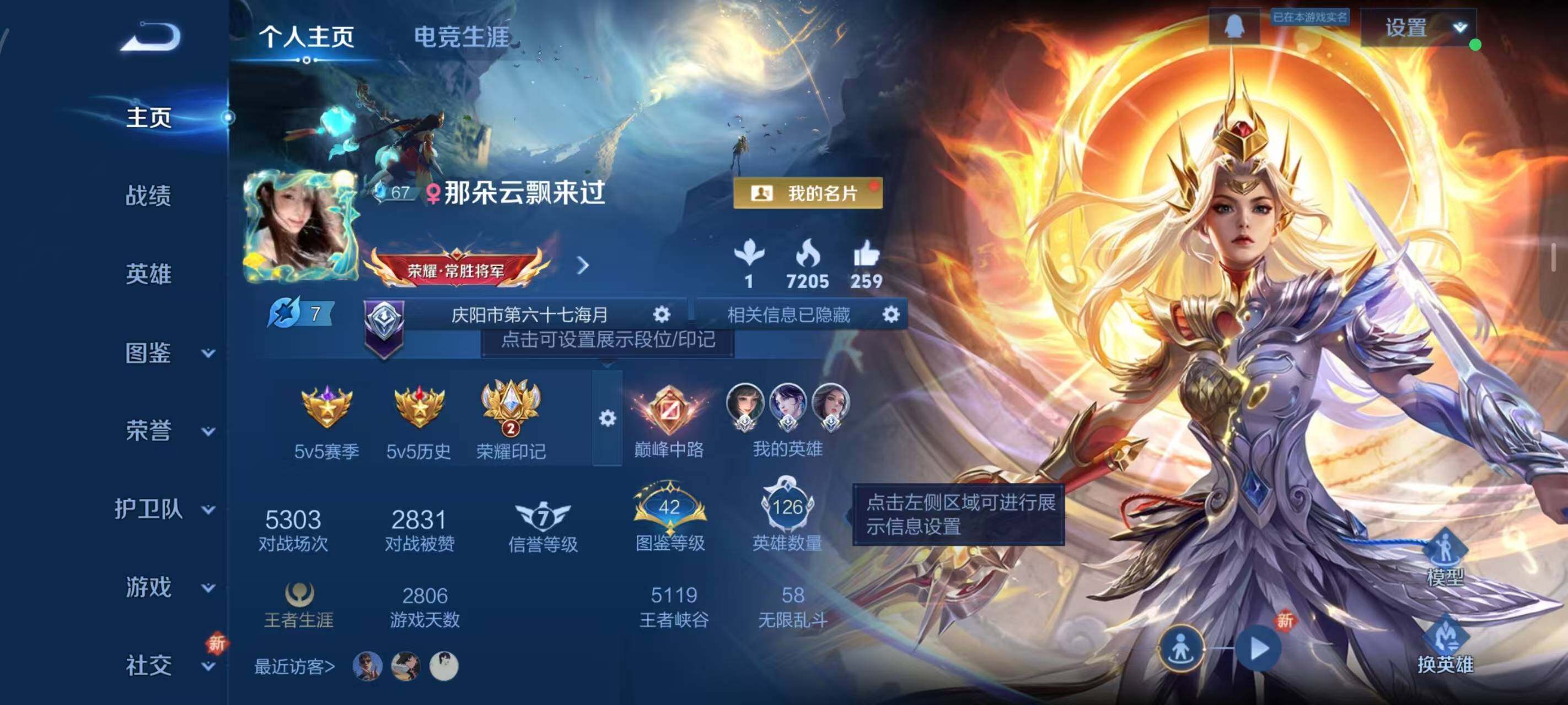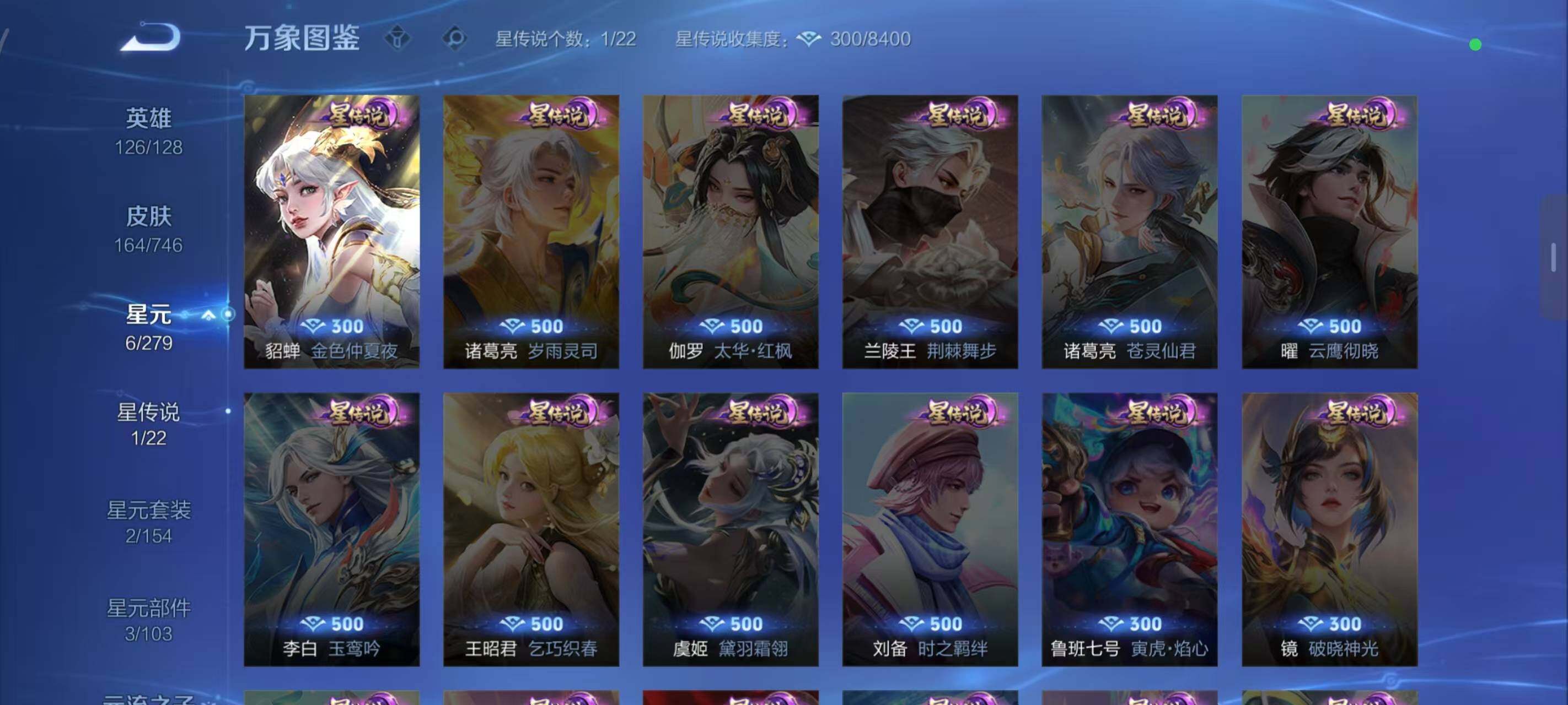 - [11520064]V7 1典藏 6传说 122英雄 229皮肤 可修改实名 荣耀水晶:鸣剑·曳影 传说皮:地狱之眼,云鹰飞将(小将军),炽阳神光 珍宝阁皮:妄想食味,蔷薇恋人,女武神 限定皮:鸣野蒿,白虎志(电光耗子),高山流水,五谷丰年,游园惊梦,梁祝,天狼狩猎者,祈雪灵祝(雪兔子),李小龙,默契交锋-花木兰,山海·玄木吟(马可年限) 史诗皮:星界战将,蒙犽顽岩魄,超元猎域,电玩小子(小书包),黄金分割率,特工魅影,千年之狐,江河有灵,蒙恬荣光圣徽,冰冠公主,偶像歌手,魅语,电玩·爆裂旋风,暗夜猫娘,末日机甲-吕布,猫狗日记-孙策,猫狗日记-大乔,时之恋人-孙尚香,节奏热浪,修罗,女仆咖啡,水果甜心,绅士熊喵,星夜王子,暗隐猎兽者,幽灵船长,鬼剑武藏,舞动绿茵,纤云弄巧,繁星吟游(呼啦呼啦),拒霜思,缤纷独角兽,乘风破浪,逐浪之夏,水晶猎龙者,曙光守护者,热力回旋,箭羽风息,金属风暴,原初追逐者,圣诞狂欢,圣诞恋歌,鹰眼统帅,黎明之约,赏金猎手,无心,未来纪元-赵云