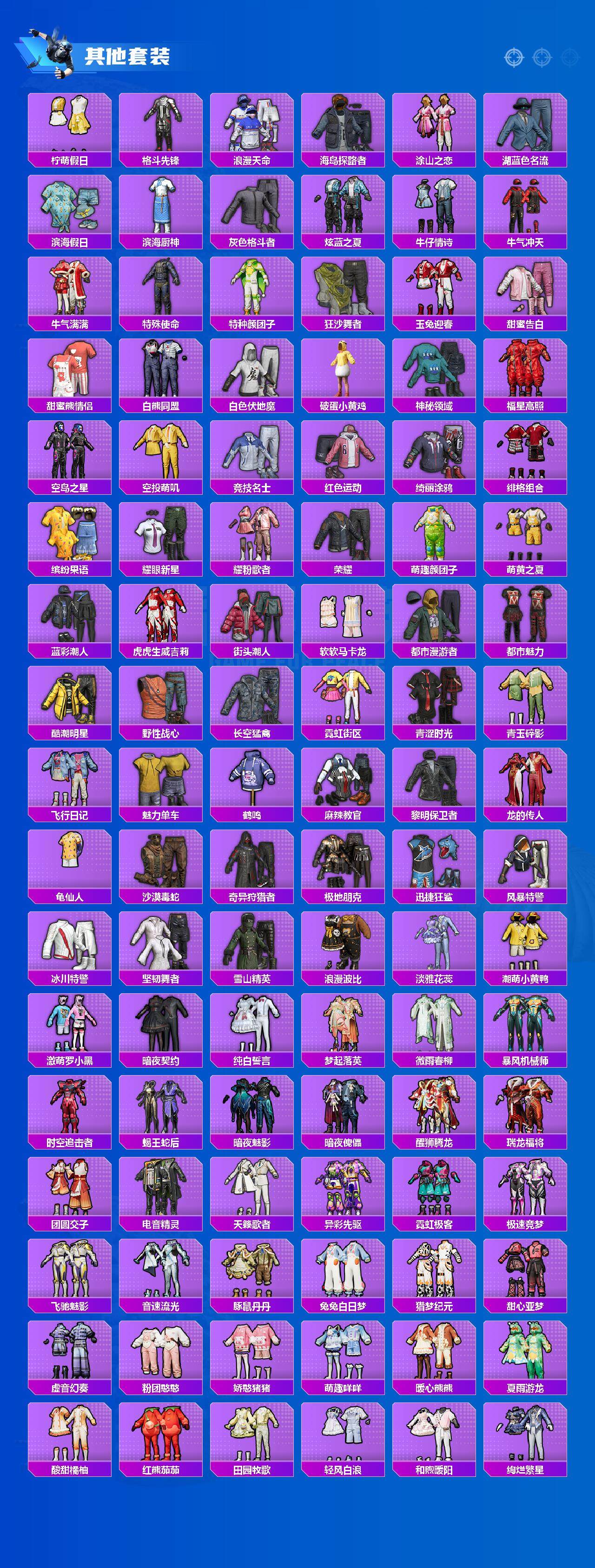 套装-浪漫天命,套装-龟仙人,套装-暗影哥特,套装-狂沙舞者,套装-破蛋小黄鸡,套装-雪山精英,套装-暗夜契约,套装-纯白誓言,套装-梦起落英,套装-醒狮腾龙,套装-瑞龙福将,套装-团圆交子,套装-豚鼠丹丹