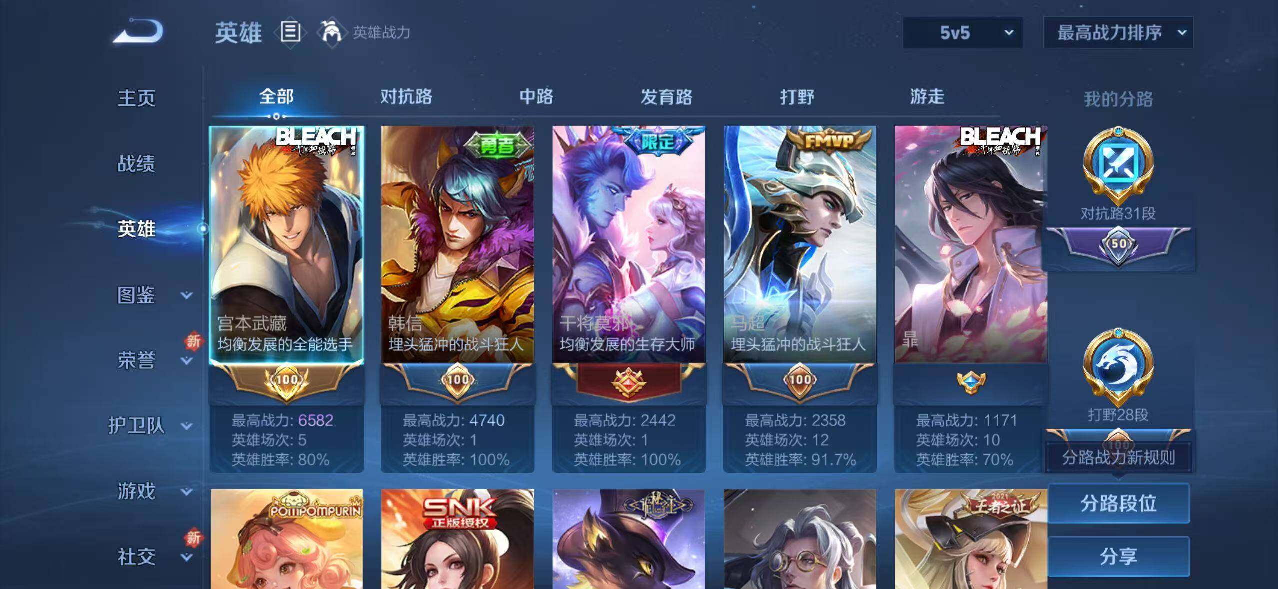 关羽冰锋战神,裴擒虎李小龙,韩信飞衡,孙悟空大圣娶亲,干将莫邪冰霜恋舞曲,花木兰青春决赛季,桑启鸣野蒿