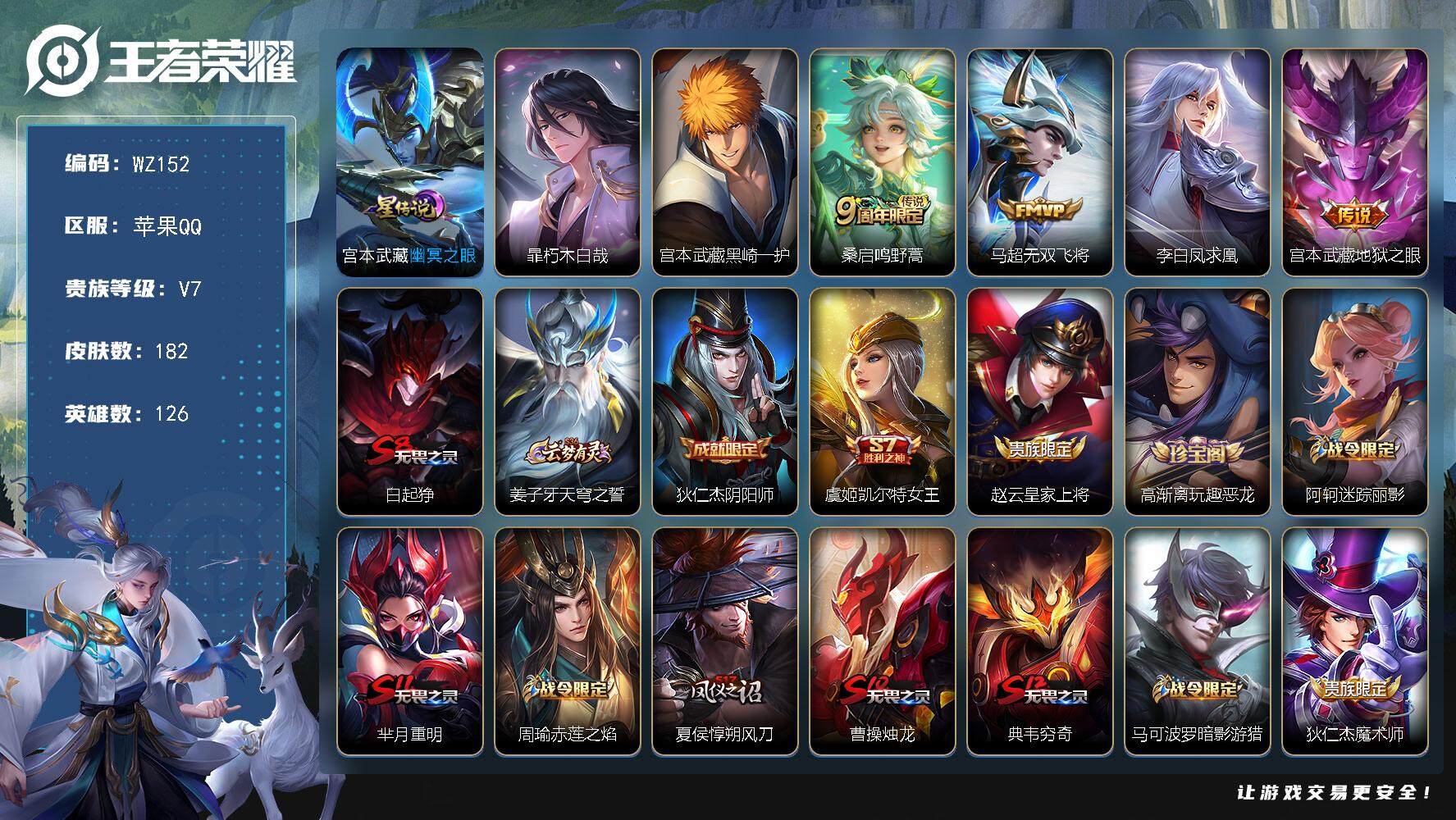 [13878236]金标宫本,苹果Q-V7-182皮肤2珍品传说-4传说-45史诗 【珍品传说】:暃朽木白哉,宫本武藏黑崎一护 【传说皮肤】:桑启鸣野蒿,马超无双飞将,李白凤求凰,宫本武藏地狱之眼 【限定皮肤】:白起狰,姜子牙天穹之誓,狄仁杰阴阳师,虞姬凯尔特女王,赵云皇家上将,高渐离玩趣恶龙,阿轲迷踪丽影,芈月重明,周瑜赤莲之焰,夏侯惇朔风刀,曹操烛龙,典韦穷奇,马可波罗暗影游猎,狄仁杰魔术师,狄仁杰万华元夜,项羽海滩派对,老夫子醍醐杖,关羽冰锋战神,程咬金演武夺筹,刘邦夺宝奇兵,韩信飞衡,兰陵王驯魔猎人,花木兰青春决赛季,孙悟空大圣娶亲,牛魔御旌,钟馗驱傩正仪,干将莫邪冰霜恋舞曲,雅典娜黎明之约,太乙真人饕餮,鬼谷子原初探秘者,百里玄策原初追逐者,弈星混沌棋,明世隐疑决卦,裴擒虎李小龙,裴擒虎擒涛扼浪,狂铁御狮,米莱狄御霄,云中君纤云弄巧,盾山御銮,猪八戒西部大镖客,鲁班大师探海日志,桑启海盐诗旅,张良古海寻踪,蒙恬荣光圣徽,鬼谷子天穹祈灯 【年限皮肤】:李白凤求凰,韩信飞衡 【赛季限定】:白起狰,芈月重明,夏侯惇朔风刀,曹操烛龙,典韦穷奇,狄仁杰万华元夜,老夫子醍醐杖,程咬金演武夺筹,张良古海寻踪,牛魔御旌,虞姬凯尔特女王,钟馗驱傩正仪,雅典娜黎明之约,太乙真人饕餮,鬼谷子原初探秘者,百里玄策原初追逐者,弈星混沌棋,明世隐疑决卦,裴擒虎擒涛扼浪,狂铁御狮,米莱狄御霄,盾山御銮,鲁班大师探海日志,桑启海盐诗旅,鬼谷子天穹祈灯,蒙恬荣光圣徽,姜子牙天穹之誓 【战令限定】:阿轲迷踪丽影,周瑜赤莲之焰,马可波罗暗影游猎,刘邦夺宝奇兵,兰陵王驯魔猎人,猪八戒西部大镖客 【史诗皮肤】:项羽苍穹之光,露娜紫霞仙子,赵云皇家上将,甄姬冰雪圆舞曲,狄仁杰魔术师,廉颇地狱岩魂,宫本武藏鬼剑武藏,孙尚香水果甜心,妲己魅力维加斯,墨子金属风暴,吕布圣诞狂欢,曹操幽灵船长,李白千年之狐,关羽冰锋战神,刘邦德古拉伯爵,夏侯惇乘风破浪,小乔缤纷独角兽,兰陵王暗隐猎兽者,诸葛亮黄金分割率,花木兰青春决赛季,百里守约特工魅影,蔡文姬舞动绿茵,刘禅天才门将,李元芳逐浪之夏,孙策猫狗日记,大乔猫狗日记,干将莫邪冰霜恋舞曲,孙悟空大圣娶亲,狄仁杰鹰眼统帅,兰陵王驯魔猎人,韩信飞衡,小乔青蛇,阿轲迷踪丽影,马可波罗暗影游猎,百里玄策原初追逐者,裴擒虎李小龙,云中君纤云弄巧,雅典娜黎明之约,蒙恬荣光圣徽,牛魔星界战将,孙