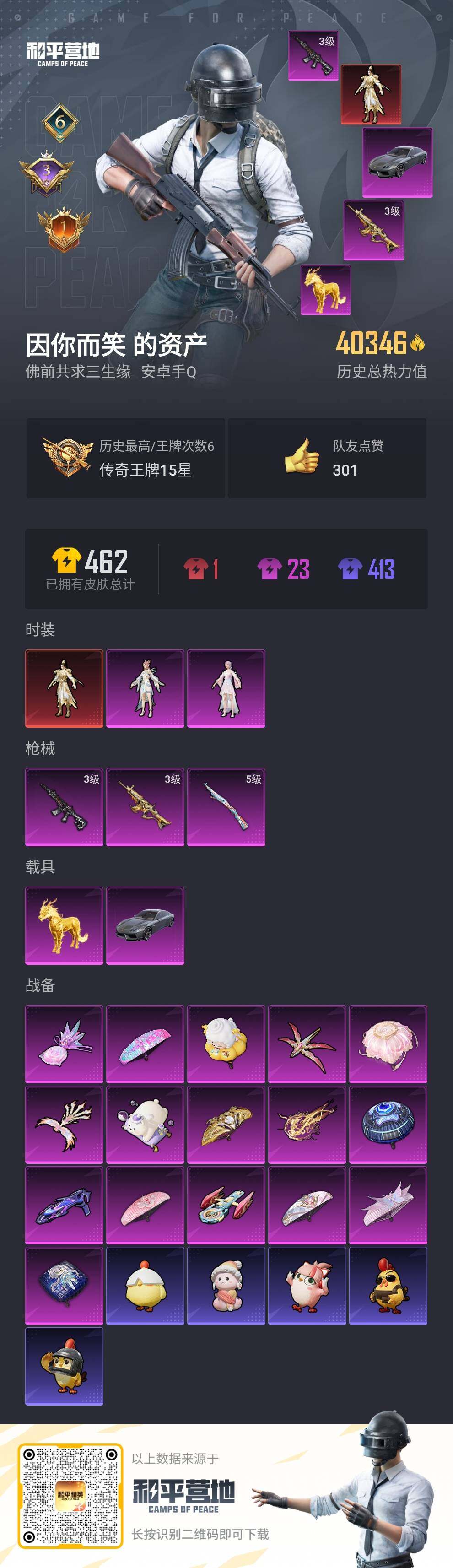 - PX_2102971- 苹果手Q-10王牌印记-10粉装-7特效枪-1载具-84921热力值-221套装-261枪皮-0卓越印记-0传奇印记 【10粉装】,梦幻火箭,千金淑猫,蓝莓炮弹,甜心娃娃,精灵娃娃,酣梦娃娃,冰霜白皇,炙焰红王,青葱仙萝,星之彼岸 【7特效枪】SCAR-L-童趣迷兔-6级 M416-暖熊萌萌-7级 M416-风花雪月-1级 M762-甜蜜誓约-7级 M762-甜心娃娃-1级