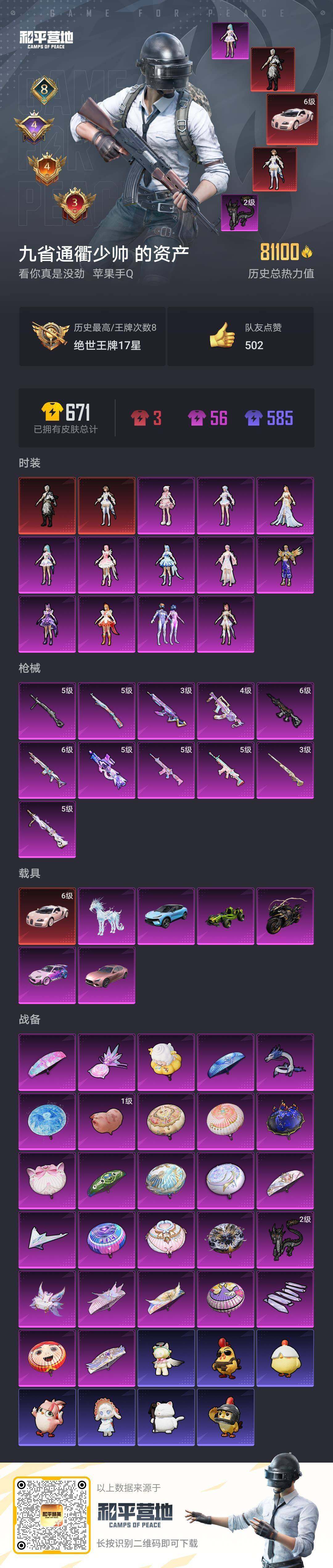 - [11755637]V8 2典藏 1无双 3珍品传说 26传说 124英雄 293皮肤 可修改实名 女号 优质装备:鸣剑·曳影,星域神启(倪克斯贼亮),雪境奇遇-甄姬,怪盗基德,黄金射手座,绛天战甲(鸡嘴战神),久胜战神,炽阳神光,一念神魔,仲夏夜之梦(大飞蛾),零号·赤焰,地狱之眼,胖达荣荣,淬星耀世,画中仙,浮生妄,妄想奇谈,鹤归松栖(云缨),千山共赴,涂山容容 珍品传说:时之奇旅-孙策,兔狲·蓬尾 传说皮:典韦战鼓燎原 珍宝阁皮:妄想食味,胡桃夹子 限定皮:愿照·九州拓(澜年限),愿照·众生和(妲己年限),愿照·千秋盛(女娲年限),逐霄战戟,鸣野蒿,异界灵契(白毛香),傲雪梅枪,绯月行,时雨天司(水龙头),神威(电光马子),遇见飞天,高山流水,降魔,武圣,游园惊梦,李小龙,朱雀志(守约年限),冰霜恋舞曲,美猴王,匿光追影者,寅虎·御盾(廉颇年限),深海之息(深海大菠萝),唐三藏,神器·万象笔 史诗皮:鸭鸭历险记-刘禅,苍鳞隐世,绮世丹青,化蝶舞,灵蛊蚀心,龙之律动,石田雨龙,百相守梦-周瑜,茶境仙,怒海争锋,琥珀纪元伽罗,曹操夜都魔契,百相守梦-百里守约,百相守梦-黄忠,织梦人,紫霞仙子,苍穹之光,千年之狐,江河有灵,雪夜绮愿(周瑜),完美假期,百解令(蒙犽),蒙恬荣光圣徽,无限星赏官,偶像歌手,白蛇,电玩·爆裂旋风,百相守梦(刘备),暗夜猫娘,末日机甲-吕布,猫狗日记-孙策,乱世虎臣,节奏热浪,修罗,水果甜心,绅士熊喵,天才门将,星夜王子,心灵骇客,功夫厨神,德古拉伯爵,暗隐猎兽者,幽灵船长,鬼剑武藏,暗渊魔法,心灵战警,天秀·启明,舞动绿茵,地狱岩魂,纤云弄巧,繁星吟游(呼啦呼啦),拒霜思,缤纷独角兽,乘风破浪,逐浪之夏,月团寄思,水晶猎龙者,曙光守护者,金属风暴,圣诞恋歌,鹰眼统帅,暗夜贵公子,魅力维加斯,寅虎·御盾,无心,