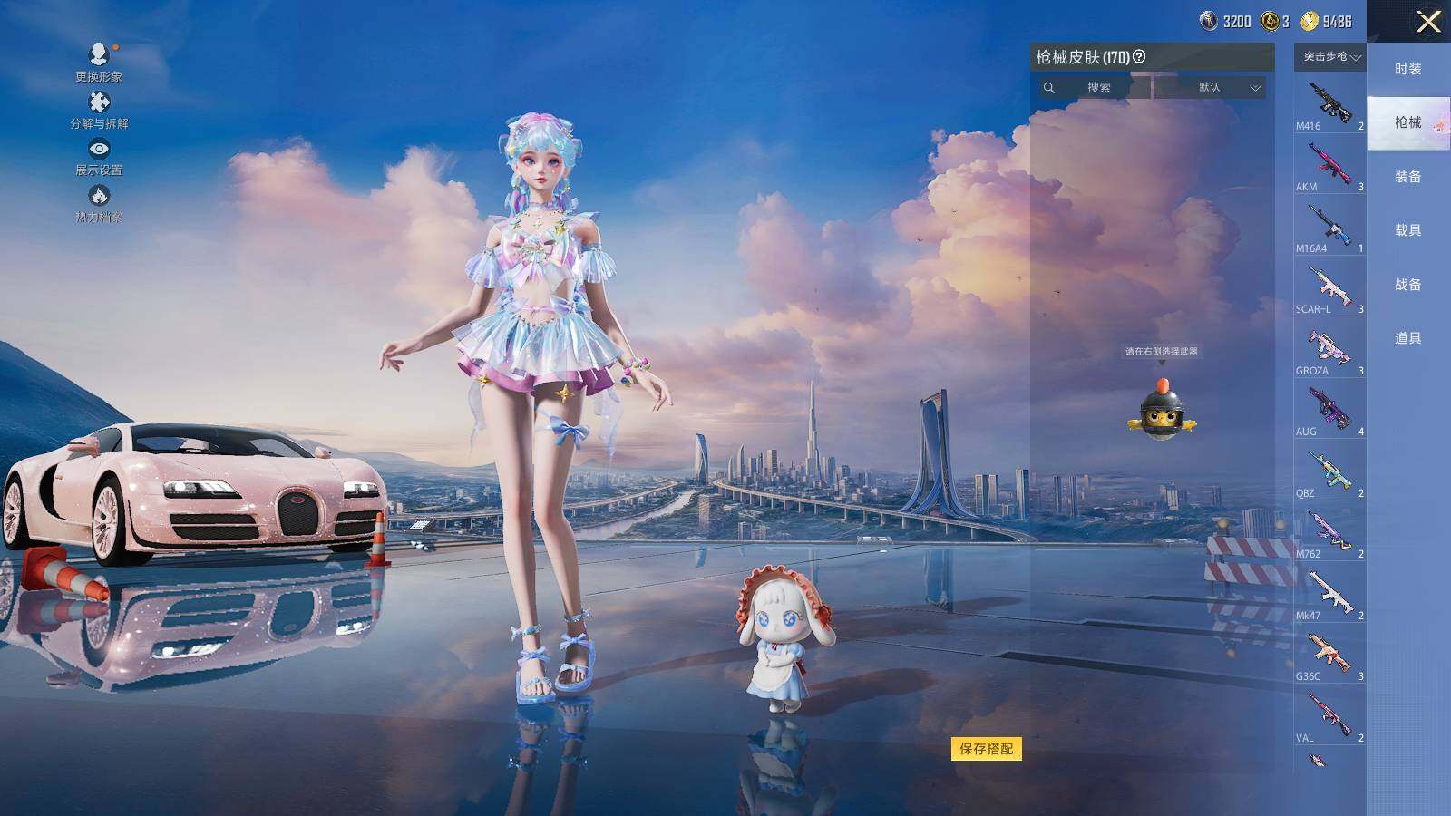 M416-电玩时刻,M416-墨龙九天,GROZA-巴啦啦小魔仙,M762-电糖天使,P90-电糖天使,Kar98K-巳巳如意,M24-镜域双华,Mk14-精灵梦叶罗丽,DP-28-圣堂之誓