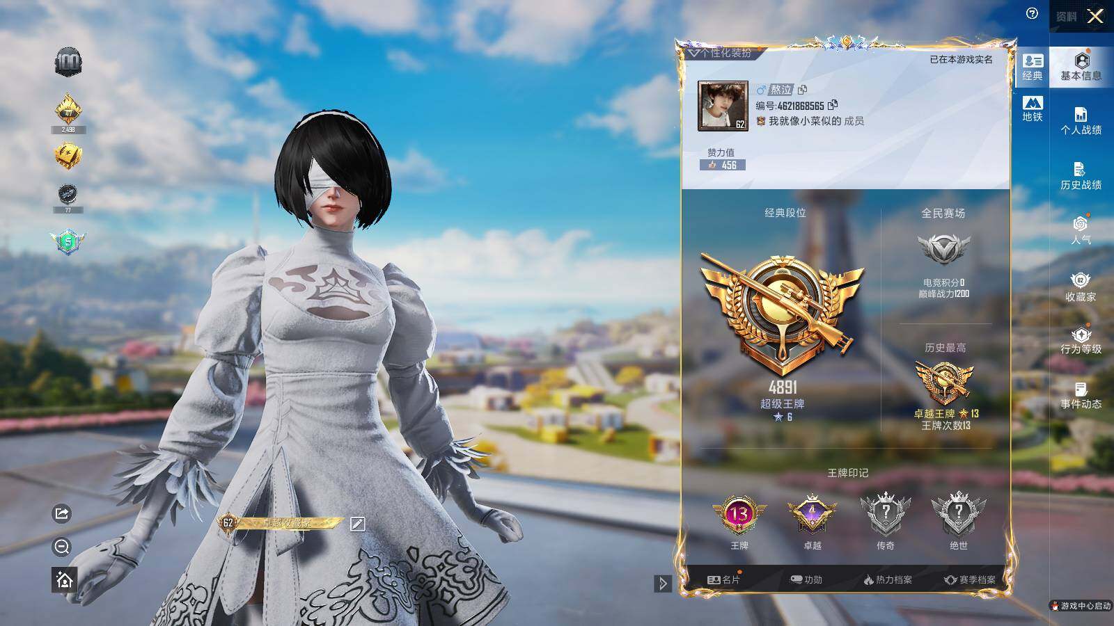 - PX_2077782- 安卓手Q-7王牌印记-3粉装-4特效枪-0载具-29173热力值-67套装-102枪皮-0卓越印记-0传奇印记 【3粉装】,天龙座 紫龙,幻影飞狐,飒粉甜心 【4特效枪】AUG-暖羊咩咩-5级 Kar98K-巳巳如意-5级 AMR-智耀战神-5级 爆炸猎弓-雪梅暗香-6级 【1稀有紫装】,龟仙人, 【67稀有时装】,SS31特训,SS33特训,SS32特训,蓝冰羽,鲛海歌