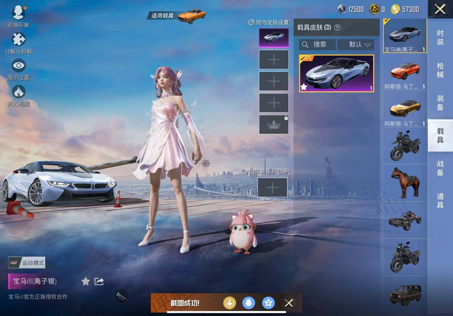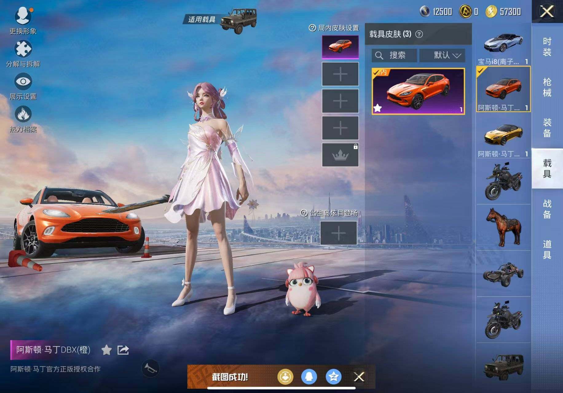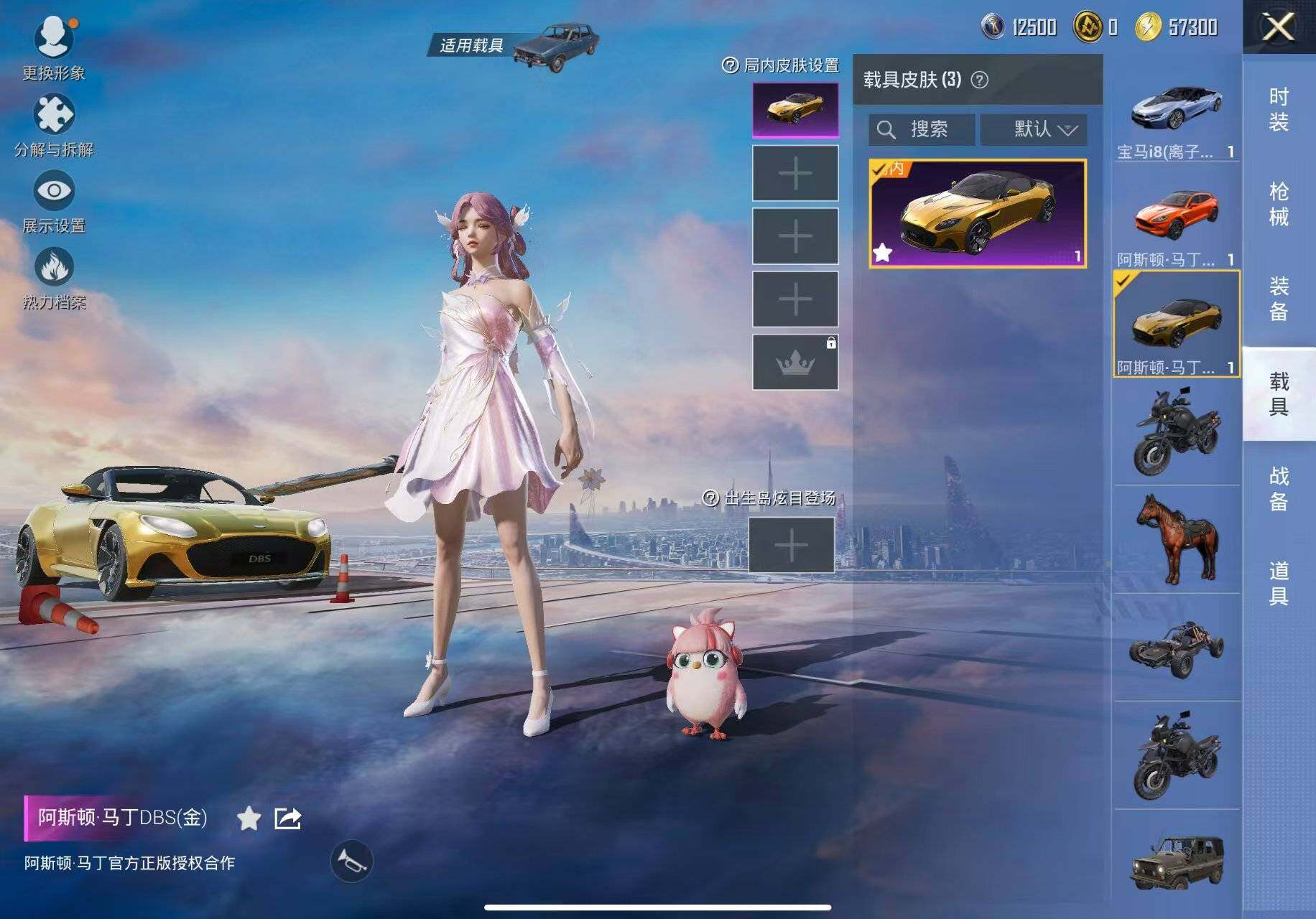 【粉色载具】:阿斯顿马丁DBS(金),阿斯顿马丁DBX(橙),宝马i8(离子银)