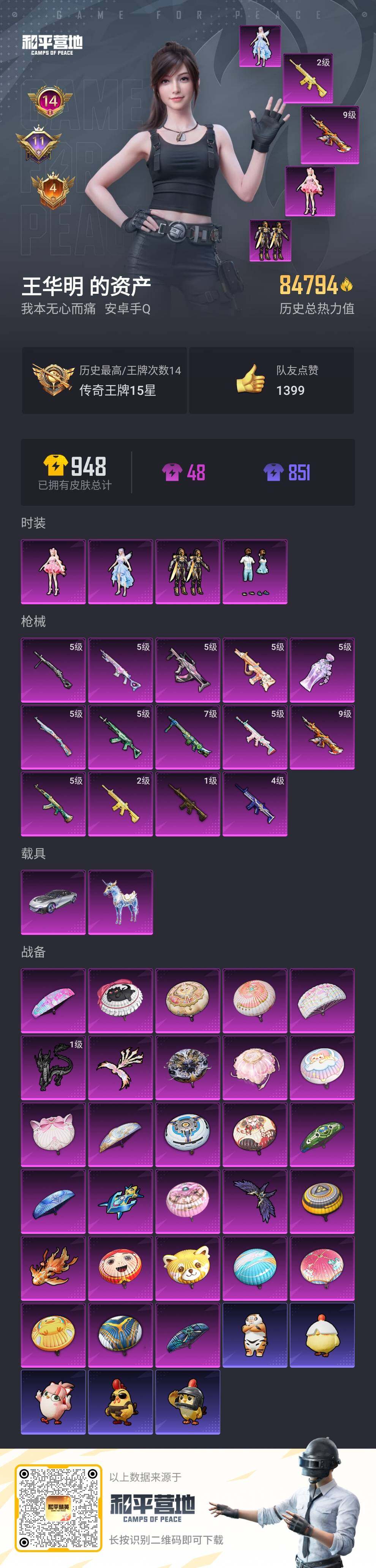 - PX_1982040- 安卓手Q-12王牌印记-20粉装-13特效枪-1载具-118093热力值-248套装-324枪皮-5卓越印记-4传奇印记 【20粉装】,梦幻火箭,宝贝奶油派,天使彩虹糖,缤纷油彩,新星烈龙,彩虹甜喵,光极星,傲傲奶龙,千金淑猫,冰炎战车,紫钛骑兵,PEL轰鸣竞梦者,蜜语绒猫,橘柚倾心,圣堂之誓,莲影清波,绚金战神,烈焰拳霸,金丰海韵,美琪 【13特效枪】AKM-绿萝繁花-