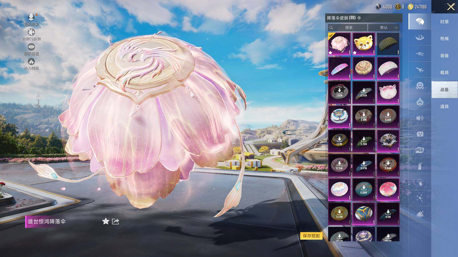 AKM-绿萝繁花,SCAR-L-青春物语,M416-五爪金龙,M416-暖熊萌萌,M416-至情至圣,GROZA-镜光银凌,AUG-暖羊咩咩,M762-青锋波束,Kar98K-巳巳如意,MG3-突变脉冲,烟雾弹-丁香清露