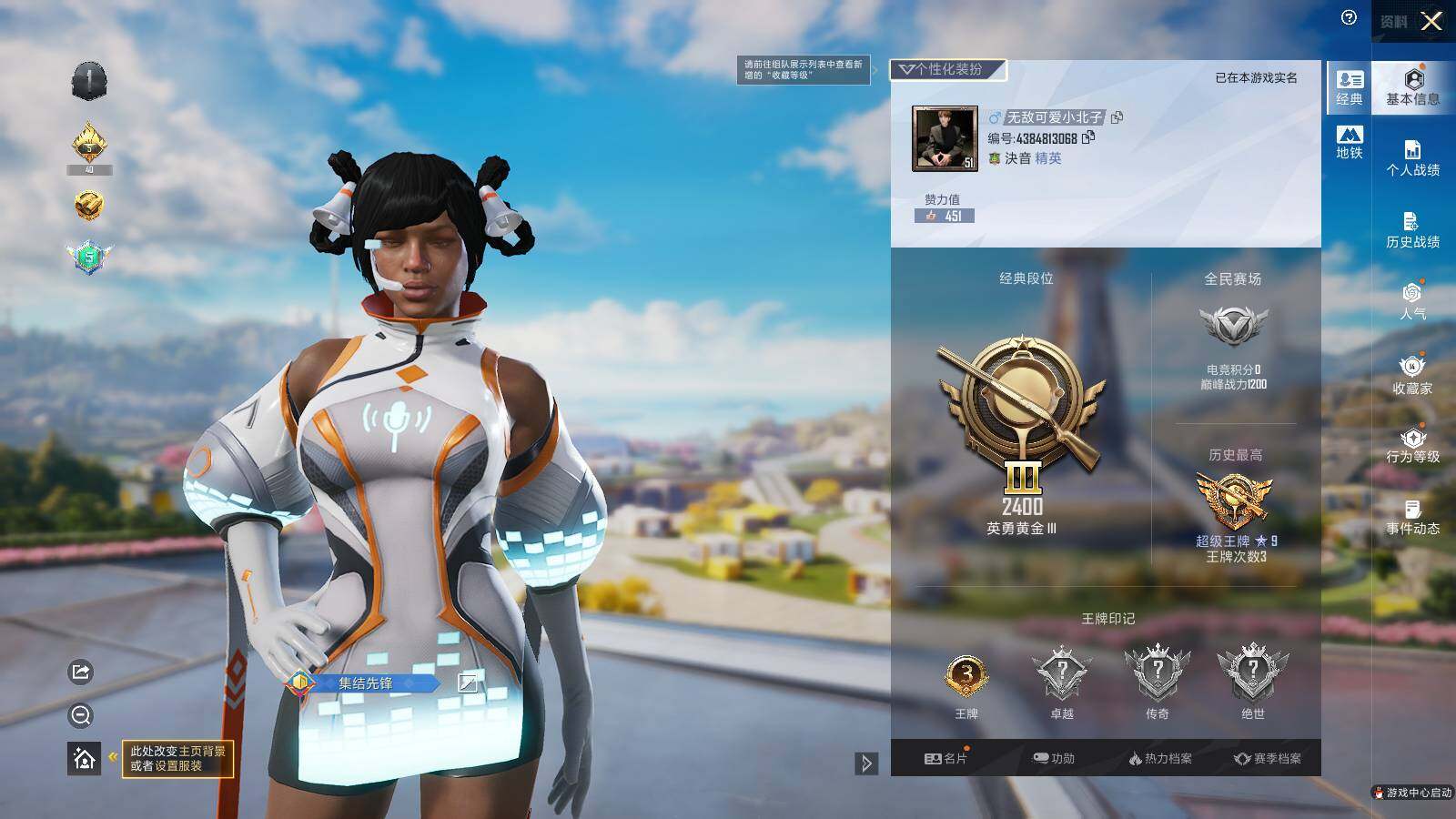 - [12029958]总资产:112.7M 10传说枪械 哈夫币:65.237K 可二次 可修改实名 优质装备:顶级安全箱(3x3) 烽火地带段位:钻石 全面战场段位:上等兵 传说武器皮肤:UZI冲锋枪-特斯拉线圈,M16A4突击步枪-狩猎时刻,AK-12突击步枪-特斯拉线圈,SR-3M紧凑突击步枪-特斯拉线圈,勇士冲锋枪-能天使-午夜邮差,Vector冲锋枪-狩猎时刻,Vector冲锋枪-能天使-午夜邮差,G3战斗步枪-狩猎时刻,M4A1突击步枪-阿米娅,CAR-15突击步枪-阿米娅 史诗武器皮肤:AUG突击步枪-蝮蛇,PKM通用机枪-蝮蛇,M16A4突击步枪-竞赛选手,M1014霰弹枪-林中猎手,MP5冲锋枪-深海恐惧,AKM突击步枪-林中猎手,QJB201轻机枪-Old Habits,SCAR-H战斗步枪-囚徒