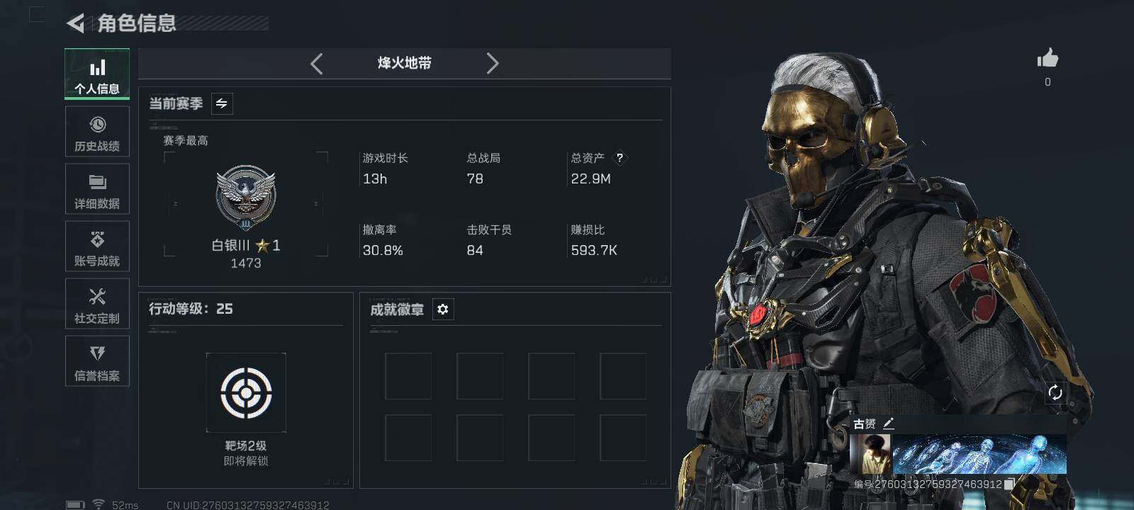 [13880002]【店主推荐捡漏号!可直接换绑】总资产23m 1013哈伏币-20m流动资产-25烽火等级-白银-2战场等级-无军衔