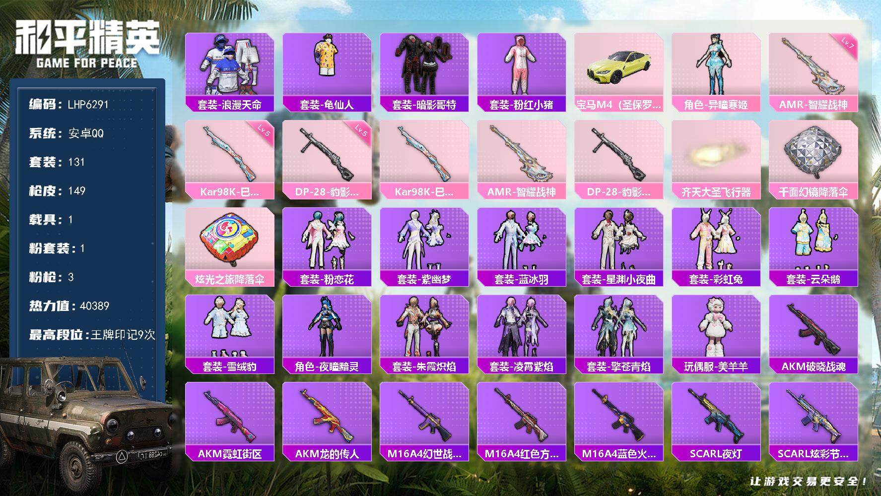 [13880122]【店主推荐捡漏号!可直接换绑】/地铁满天赋 安卓 手Q-1粉装-3特效枪-1载具-2粉色飞行器-4w热力值-9王牌印记-131套装-149枪皮【热门品类】:套装-浪漫天命,套装-龟仙人,套装-暗影哥特,套装-粉红小猪【粉色载具】:宝马M4(圣保罗黄)【粉色套装】:角色-异瞳寒姬【粉色枪皮等级】:Kar98K-巳巳如意(五级),AMR-智耀战神(七级),DP-28-豹影疾电(五级)【粉色飞行器】:齐天大圣飞行器