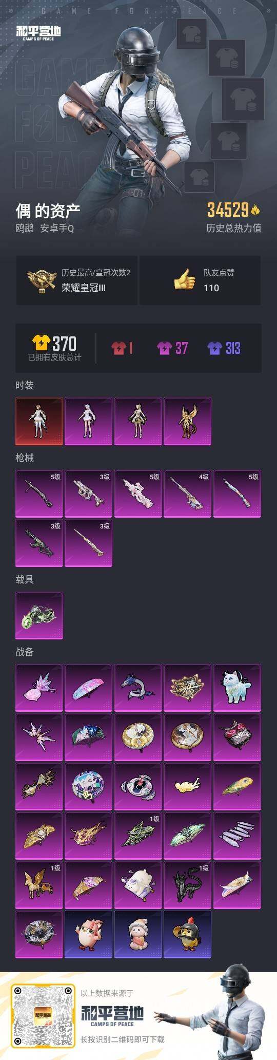 - PX_1980590-实名: 可修改 时装数: 702 载具数: 3 枪械数: 243 战备数: 153 热门装扮: 奇异狩猎者,梦幻火箭(新101),深海小丑鱼,梦魇先生,万圣娃娃,爱崽白熊,炙焰红王,冰霜白皇,童趣迷兔,蓝莓炮弹,筑梦精灵,紫电风暴,赤焰黑爵,闪耀律动,复仇流浪者,潮萌小黄鸭,软萌银虎,兔兔白日梦,仲夏莫吉托,炫光之旅 载具: 路特斯ELETRE(冰川蓝),玛莎拉蒂Quattr