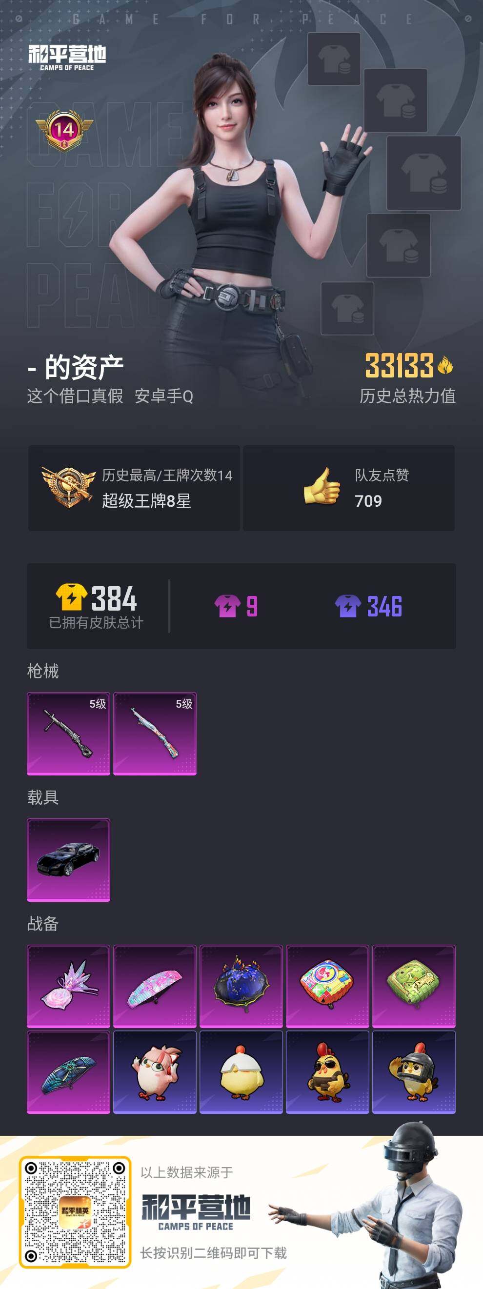 - [12943608]金蛇镇世-烛九(一级)!苹果 手Q-2神装-11粉装-11特效枪-8载具-12粉色飞行器-74105热力值-12王牌印记-120套装-177枪皮 【红色神装等级】:金蛇镇世-烛九(一级),镜域双华-欧若拉(二级) 【红色角色神装】:金蛇镇世-烛九,镜域双华-欧若拉 【热门品类】:套装-龟仙人,角色-8号机,角色-Mark.06 【粉色载具】:宾利欧陆GT敞篷(火焰橘),宾利添越(浅瞪羚棕),宝马M4(圣保罗黄),迈凯伦570S(天际蓝),帕加尼imola(光影红),永恒黄蜂,疾风龙骑,晶梦灵驹 【粉色套装】:粉装-心之回忆,粉装-傲傲奶龙,角色-烟云彩露,角色-光极星,角色-初号机 觉醒Ver.,角色-千金淑猫,粉装-牡丹亭·游园,角色-萨利娅,角色-女娲灵识,角色-羲和光序 【粉色枪皮等级】:AKM-绿萝繁花(五级),AKM-幽焰骑士(三级),M416-墨龙九天(三级),GROZA-旋转彩虹(七级),GROZA-镜光银凌(五级),AUG-许七安(四级),M762-鬼刀(四级),Famas-初号机 觉醒Ver.(七级),Kar98K-巳巳如意(五级),Mk14-盛世惊鸿(三级),DP-28-豹影疾电(五级) 【粉色枪皮】:AKM-绿萝繁花,AKM-幽焰骑士,M416-墨龙九天,GROZA-旋转彩虹,GROZA-镜光银凌,AUG-许七安,M762-鬼刀,Famas-初号机 觉醒Ver.,Kar98K-巳巳如意,Mk14-盛世惊鸿,DP-28-豹影疾电 【粉色飞行器】:酣梦熊熊飞行器,齐天大圣飞行器,黄族统领飞行器,沙丘之主天马,繁龙极客飞行器,镜域双华-灵镜之阶,鎏金朋克飞行器,龙翔九天飞行器,幽焰列车飞行器,凤舞九天飞行器 【粉色降落伞】:齐天大圣降落伞,环太平洋降落伞,太空嘟嘟降落伞,纯梦嫁纱降落伞,飒粉甜心降落伞,玉鳞金羽降落伞,镜域双华降落伞,鎏金朋克降落伞,巴啦啦小魔仙降落伞,霓虹漫游降落伞,精灵梦叶罗丽降落伞,墨龙九天降落伞,创世·救赎降落伞,初号机 觉醒Ver.降落伞,千金淑猫降落伞,临安公主降落伞,盛世惊鸿降落伞,鬼刀降落伞,幻彩电音降落伞 【稀有套装】:套装-龟仙人,套装-巳巳如意,套装-雏菊兔兔,套装-萝兰蝴蝶,套装-小熊娃娃,角色-多纳泰罗,套装-火种守卫者,套装-糖糖葫芦,套装-青团波波,套装-棉花软糖,角色-都市丽猫,套装-净心行者,角色-