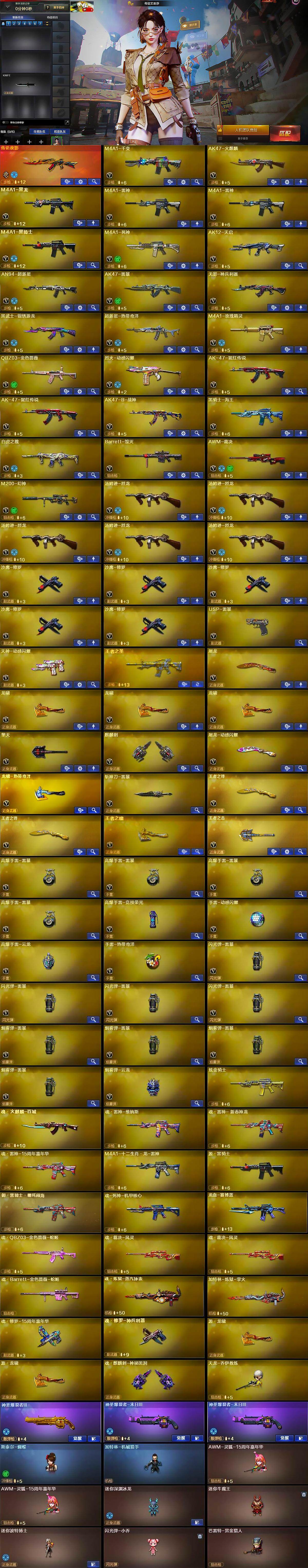 【人偶武器】:天龙-乔伊教练,斯泰尔-蝴蝶,加特林-机械猎手,AWM-灵狐-15周年嘉年华*2,迷你深渊冰龙,迷你牛魔王,迷你波特博士,闪光弹-小乔,巴雷特-赏金猎人