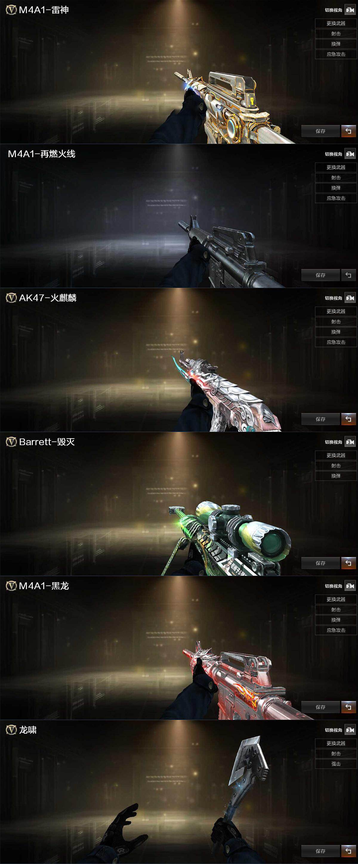 【皮肤】:雷神-耀金皮肤,M4A1-再燃火线,火麒麟-轻羽皮肤,毁灭-百城浙江 皮肤,黑龙-暗月,轻型军用手斧-再燃火线
