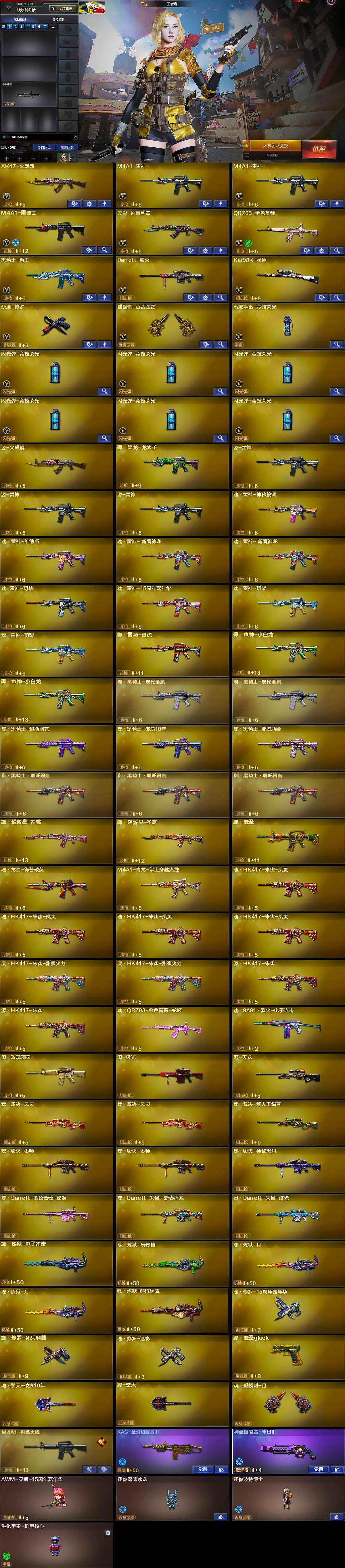 【英雄级武器】:AK47-火麒麟,M4A1-雷神*2,M4A1-黑骑士,无影-神兵利器,QBZ03-金色蔷薇,黑骑士-海王,Barrett-毁灭,Kar98K-星神,沙鹰-修罗,麒麟刺-百战金芒,高爆手雷-竞技荣光,闪光弹-竞技荣光*6