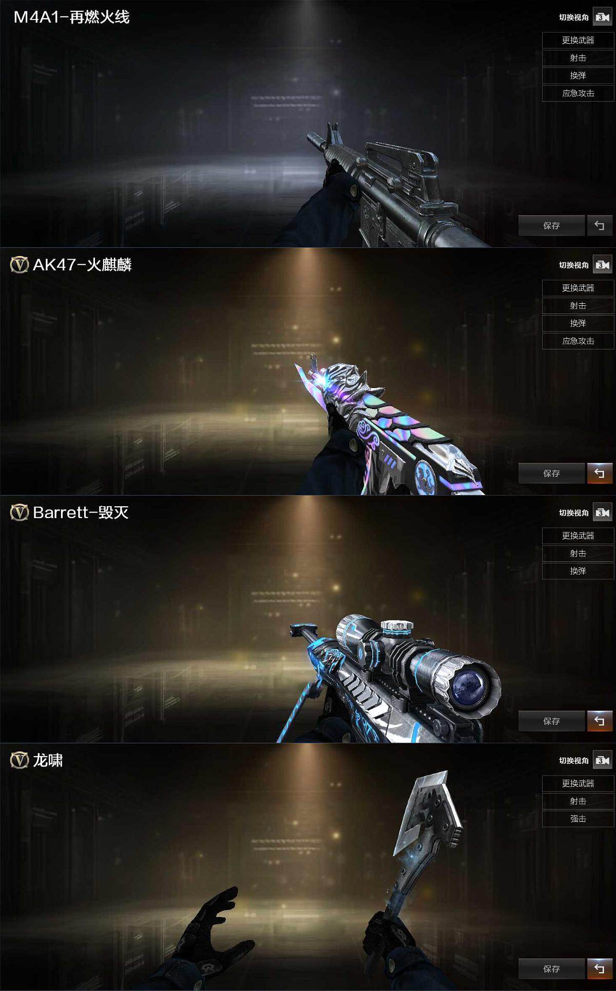 【皮肤】:M4A1-再燃火线,火麒麟-白虎,毁灭-风暴,轻型军用手斧-再燃火线