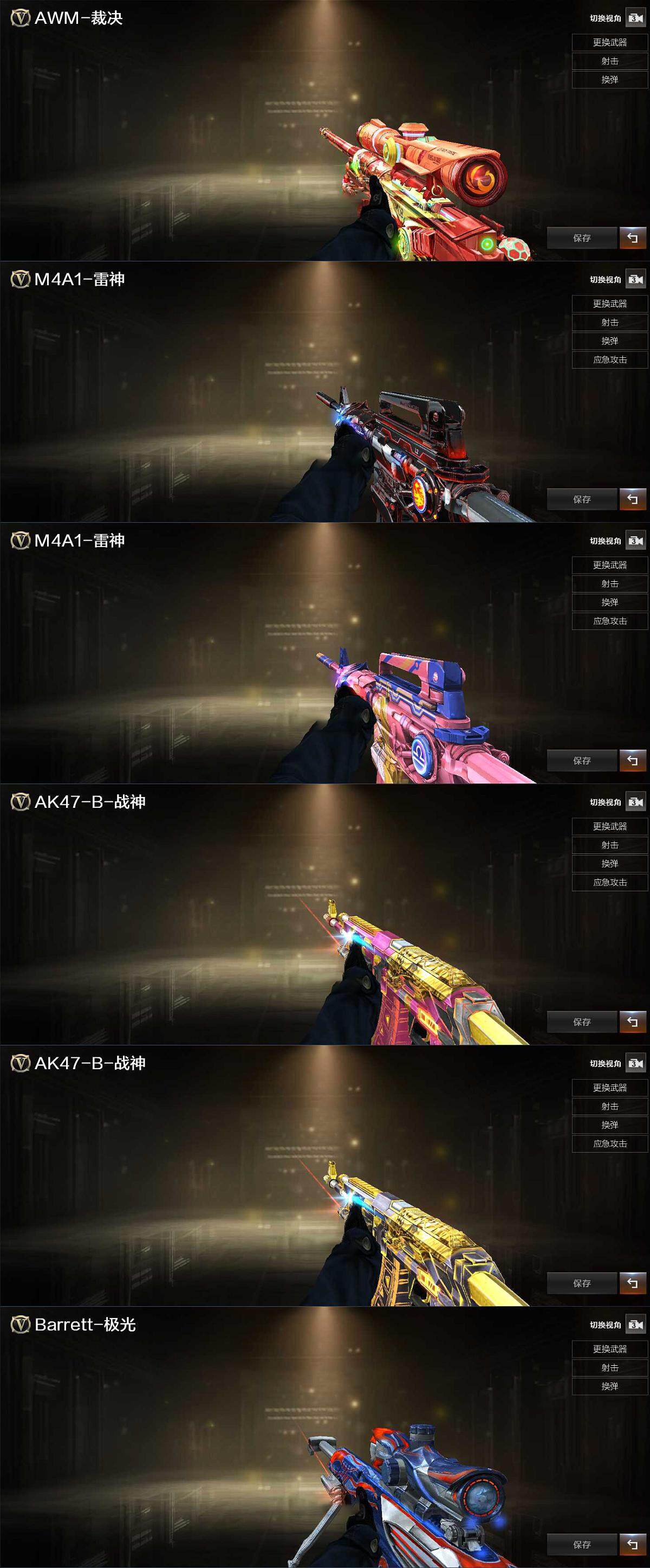 【皮肤】:AWM-裁决-凤灵皮肤,雷神-暗月,雷神-维纳斯皮肤,战神-粉色甜心皮肤,战神-流金岁月皮肤,AK47-B-常胜将军-曹操,AK47-B-常胜将军-刘备*2,AK47-B-常胜将军-孙权,极光-能量核心