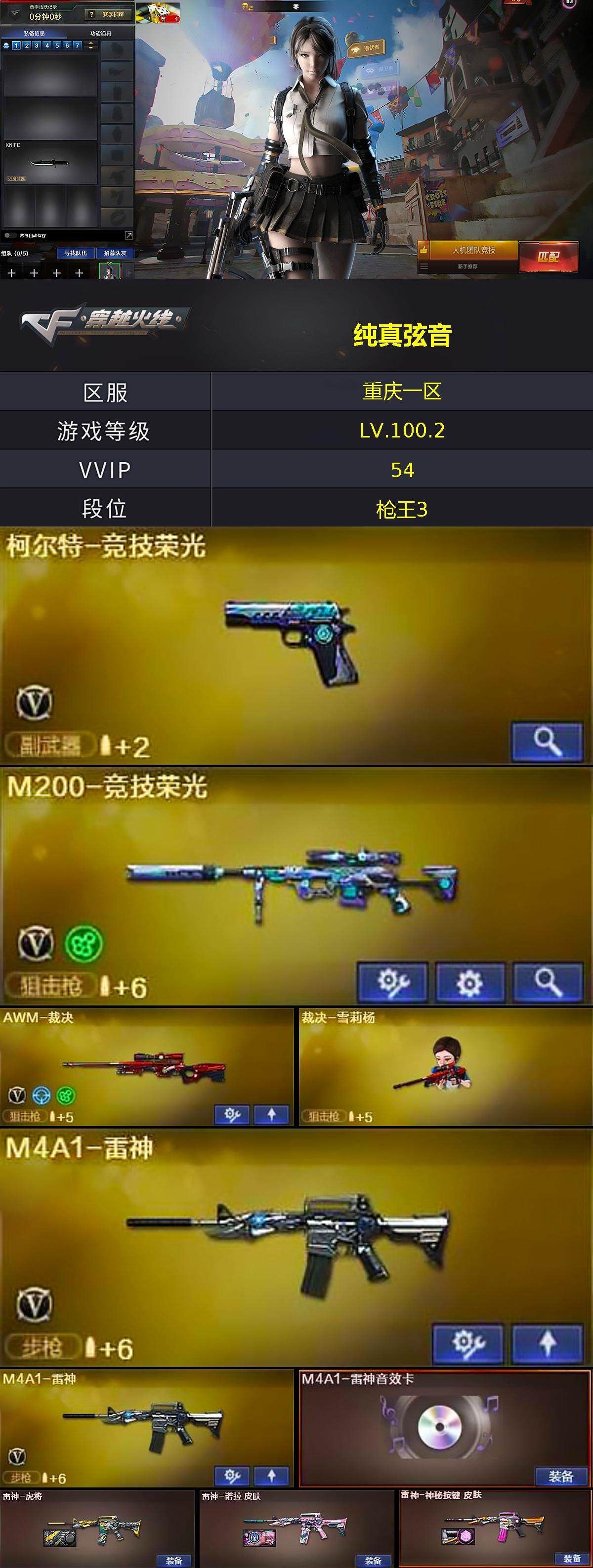 [13883929]重庆一区-53V-3王者-0炫金 【热门武器】:M200-竞技荣光,死亡之眼,M4A1-黑骑士,裁决-雪莉杨,沙鹰-修罗*3 【王者炫金武器】:王者之影 【音效卡】:M4A1-雷神音效卡,M4A1-黑骑士音效卡,Barrett-毁灭音效卡 【皮肤】:雷神-虎将,雷神-诺拉 皮肤,雷神-神秘按键 皮肤,火麒麟-轻羽皮肤,毁灭耀金皮肤,毁灭-战神张飞,毁灭-英雄计划 皮肤,黑骑士-暗月,AK47-B-常胜将军-曹操,AK47-B-常胜将军-孙权*2,修罗-能量核心,屠龙-春桃 皮肤 【角色】:零,雨棠,电竞教官-云悠悠,王者-魅影,乔伊教练,修道士,初恋灵狐,风暴女,疾风,娟娟,龙儿-小淘气,麻雀,潘多拉-X,潘多拉-甜心教官,雪莉杨-摸金校尉,影武者-X 【人偶武器】:裁决-雪莉杨,AWM-灵狐-15周年嘉年华,闪光弹-小乔,闪光弹-貂蝉,高爆手雷-大乔 【暴走生化】:死亡之眼 【英雄级武器】:AK47-火麒麟*2,M4A1-雷神*2,M4A1-黑骑士,AK-47-猩红传说,黑骑士-海王,AK47-B-常胜将军,Barrett-毁灭,AWM-裁决,M200-竞技荣光,AA-12-雷霆,沙鹰-修罗*3,沙鹰-天神,柯尔特-竞技荣光,屠龙*2,擎天*2,麒麟刺*2,擎天-竞技荣光,王者之击-觉醒版,高爆手雷-竞技荣光*7,闪光弹-竞技荣光*7,烟雾弹-竞技荣光*7 【道具】:CFS限定背包,云山科技背包,亚洲杯纪念炫彩背包,女皇终结者-背包,炫彩背包,超级背包,女皇终结者-魔龙之吻,绿色巨人,灵魂忍者,迷雾幽灵,夺命之镰,防化服*2,流光-鎏金之域,枪王排位28赛季金色流光,枪王排位29赛季金色流光,电玩兔兔表情,炽雪表情,斯沃特表情,动感闪耀表情,EP战队名片,EP战队喷图,防弹头盔*4,防弹衣*3,C4工具钳*4,手雷包*3 【特殊枪械】:1黑骑士