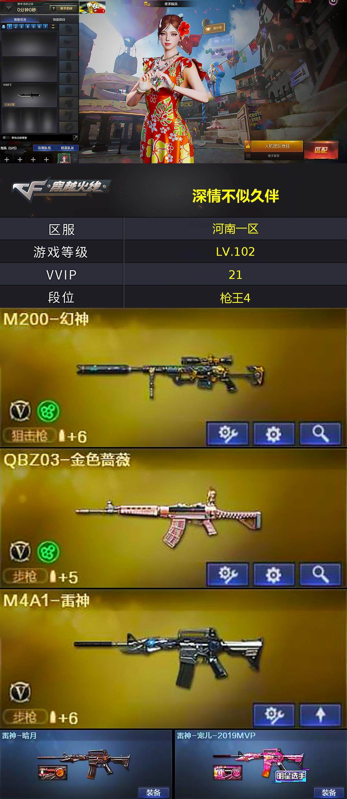 [13885910]河南一区-18V-2王者-0炫金 【热门武器】:QBZ03-金色蔷薇,M200-幻神 【王者炫金武器】:王者玄武 【皮肤】:金色蔷薇-热带奇洋 皮肤,雷神-暗月,雷神-宠儿-2019MVP,火麒麟-百城,火麒麟-心动糖果,毁灭-虹光风暴 皮肤,极光-高能霹雳 皮肤 【角色】:奇洋探员,乔伊教练,暗夜-X,初恋灵狐,飞虎队-X,嘉年华灵狐,娟娟,0号玩家,灵狐-花神,灵狐者-X,龙儿,麻雀,曼陀罗-X,曼陀罗-礼服,萌儿,潘多拉-X,潘多拉-甜心教官,斯沃特-X,铁骑荣耀,兔囡囡,维纳斯,新娜塔莎,雪莉杨,雪莉杨-摸金校尉,樱-战斗天使,游珑儿 【人偶武器】:AWM-灵狐-15周年嘉年华,迷你深渊冰龙,迷你波特博士,夺魂 【暴走生化】:超级对讲机 【挑战大师】:冰龙粉碎者-白马银枪,激光毁灭者III-白马银枪*2,神圣爆裂者-末日III*2 【英雄级武器】:M4A1-千变,AK47-火麒麟,M4A1-雷神,无影-神兵利器,黑武士-锦绣游龙,超新星-热带奇洋,QBZ03-金色蔷薇,王者之圣-觉醒版,M200-幻神,Barrett-金色蔷薇,天神-动感闪耀,麒麟刺*2,幻灵之锋,龙啸-热带奇洋,高爆手雷-幻灵,手雷-动感闪耀,手雷-热带奇洋,闪光弹-幻灵,烟雾弹-幻灵 【道具】:CFS限定背包,云山科技背包,奇洋探员-海龟背包,炫彩背包,热带奇洋炫彩背包,超级背包,女皇终结者-魔龙之吻,绿色巨人,灵魂忍者*2,变异宝贝,迷雾幽灵*2,生化弹匣,夺命之镰,防化服*3,金色流光-枪王排位*2,星辰流光-枪王排位,流光-鎏金之域,枪王排位28赛季金色流光,枪王排位29赛季金色流光,热带奇洋表情,C4-红龙,防弹头盔*4,防弹衣*4,C4工具钳*4,手雷包*4 【特殊枪械】: