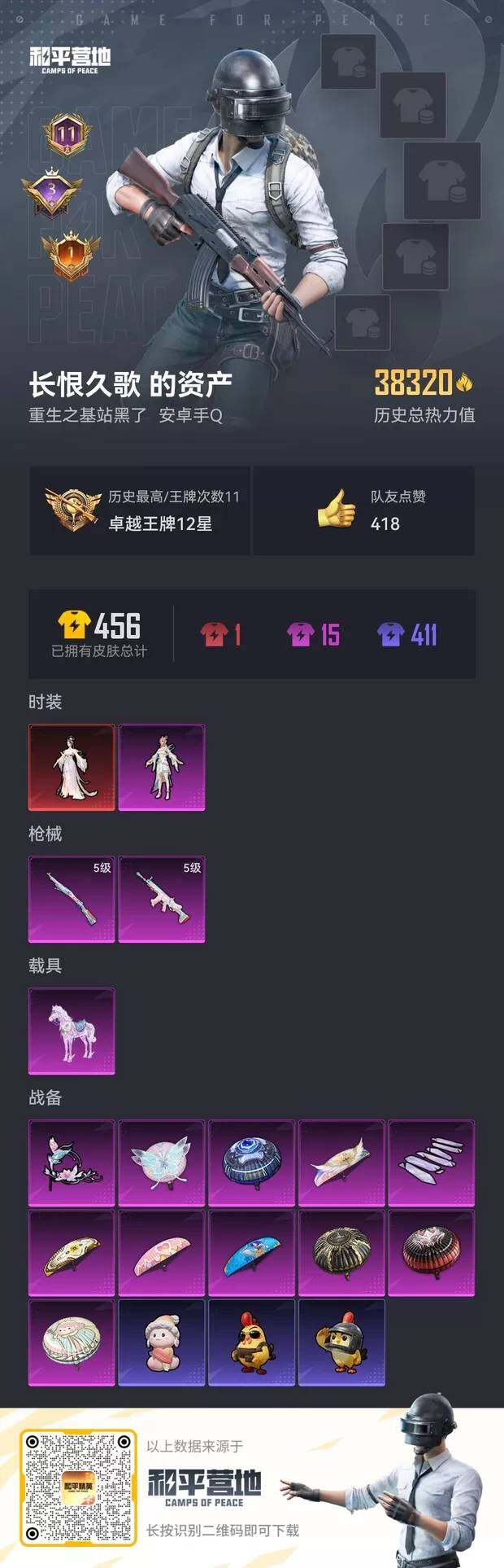 [13888021]安卓 手Q-1神装-1粉装-2特效枪-1载具-2粉色飞行器-38320热力值-11王牌印记-77套装-142枪皮