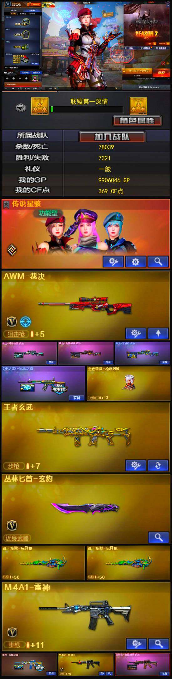 【皮肤】:QBZ03-冠军之薇,裁决-典雅胡桃 皮肤,裁决-叶芒苍灵 皮肤,裁决-运输船 皮肤,雷神-荣耀之魄,火麒麟-雷神,黑骑士-典雅胡桃 皮肤,天龙-秘银,屠龙-荣耀之锋