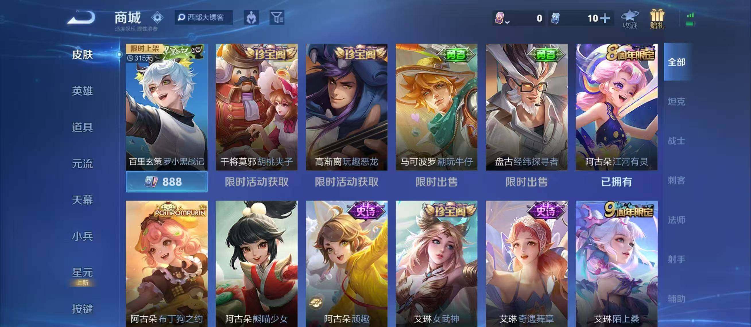 【英雄全皮】:廉颇全皮,小乔全皮,赵云全皮,墨子全皮,妲己全皮,嬴政全皮,孙尚香全皮,鲁班七号全皮,庄周全皮,刘禅全皮,阿轲全皮,钟无艳全皮,孙膑全皮,扁鹊全皮,白起全皮,芈月全皮,吕布全皮,周瑜全皮,元歌全皮,夏侯惇全皮,甄姬全皮,曹操全皮,典韦全皮,宫本武藏全皮,李白全皮,狄仁杰全皮,达摩全皮,项羽全皮,武则天全皮,司马懿全皮,老夫子全皮,关羽全皮,貂蝉全皮,安琪拉全皮,程咬金全皮,露娜全皮,姜子牙全皮,刘邦全皮,韩信全皮,孙权全皮,王昭君全皮,兰陵王全皮,花木兰全皮,艾琳全皮,张良全皮,不知火舞全皮,朵莉亚全皮,娜可露露全皮,橘右京全皮,亚瑟全皮,孙悟空全皮,牛魔全皮,后羿全皮,刘备全皮,张飞全皮,李元芳全皮,虞姬全皮,钟馗全皮,杨玉环全皮,苍全皮,杨戬全皮,女娲全皮,哪吒全皮,雅典娜全皮,蔡文姬全皮,太乙真人全皮,东皇太一全皮,鬼谷子全皮,诸葛亮全皮,大乔全皮,黄忠全皮,铠全皮,苏烈全皮,百里守约全皮,弈星全皮,梦奇全皮,公孙离全皮,沈梦溪全皮,明世隐全皮,裴擒虎全皮,狂铁全皮,米莱狄全皮,瑶全皮,云中君全皮,李信全皮,伽罗全皮,盾山全皮,孙策全皮,猪八戒全皮,上官婉儿全皮,亚连全皮,嫦娥全皮,大司命全皮,马超全皮,海月全皮,曜全皮,西施全皮,蒙犽全皮,鲁班大师全皮,蒙恬全皮,澜全皮,镜全皮,阿古朵全皮,桑启全皮,夏洛特全皮,司空震全皮,云缨全皮,金蝉全皮,暃全皮,赵怀真全皮,莱西奥全皮,戈娅全皮,空空儿全皮,影全皮,海诺全皮,姬小满全皮,少司缘全皮