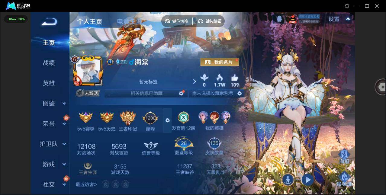 - PX_2093845-实名: 可修改 贵族等级: V7 英雄数: 122 皮肤数: 198 传说皮: 炽阳神光,乘龙·问璇玑 限定皮: 梁祝,匿光决锋者,五谷丰年,山海·玄木吟,齐天大圣,鸣野蒿,愿照·千秋盛