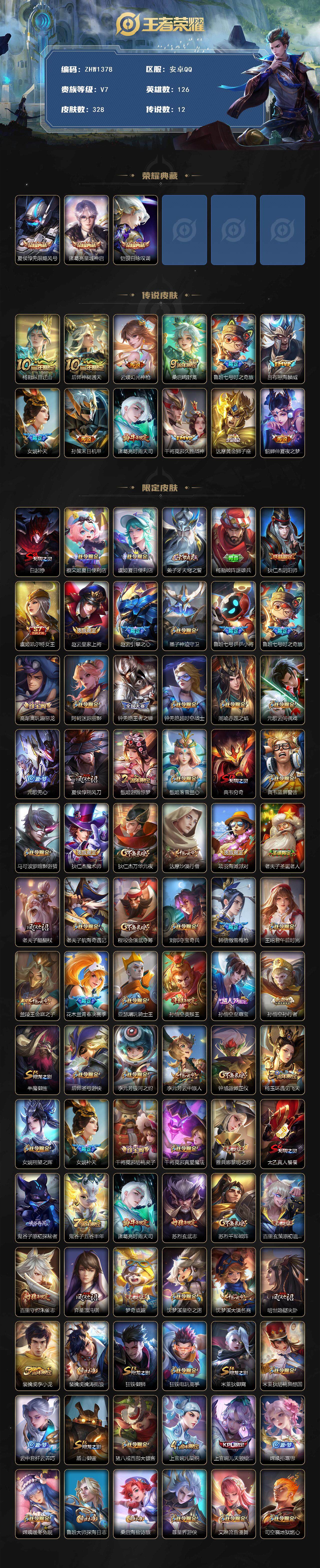 [13910218]【店主推荐捡漏号!可直接换绑】安卓Q-V7-最强王者段位-126英雄-328皮肤-3典藏--12传说-90史诗 【英雄全皮】:狂铁全皮,蒙恬全皮,空空儿全皮 【荣耀典藏】:夏侯惇无限飓风号,诸葛亮星域神启,铠银白咏叹调 【传说皮肤】:杨戬纵目迁山,后羿神树通天,云缨幻光神枪,桑启鸣野蒿,鲁班七号时之奇旅,吕布怒海麟威,女娲补天,孙策末日机甲,诸葛亮时雨天司,干将莫邪久胜战神,达摩黄金狮子座,貂蝉仲夏夜之梦 【限定皮肤】:白起狰,蔡文姬夏日便利店,虞姬夏日便利店,姜子牙天穹之誓,杨戬破阵退雄兵,狄仁杰阴阳师,虞姬凯尔特女王,赵云皇家上将,赵云引擎之心,墨子神迹守卫,鲁班七号乒乒小将,鲁班七号时之奇旅,高渐离玩趣恶龙,阿轲迷踪丽影,钟无艳王者之锤,钟无艳超时空战士,周瑜赤莲之焰,元歌云间偶戏,元歌无心,夏侯惇朔风刀,甄姬游园惊梦,甄姬落雪兰心,典韦穷奇,典韦蓝屏警告,马可波罗暗影游猎,狄仁杰魔术师,狄仁杰万华元夜,达摩沙漠行僧,项羽海滩派对,老夫子圣诞老人,老夫子醍醐杖,老夫子航海奇遇记,程咬金演武夺筹,刘邦夺宝奇兵,韩信傲雪梅枪,王昭君午后时光,兰陵王金庭之子,花木兰青春决赛季,亚瑟潮玩骑士王,孙悟空美猴王,孙悟空至尊宝,孙悟空孙行者,牛魔御旌,后羿圣弓游侠,李元芳银河之约,李元芳云中旅人,钟馗驱傩正仪,杨玉环遇见飞天,女娲朔望之晖,女娲补天,干将莫邪胡桃夹子,干将莫邪真爱魔法,雅典娜黎明之约,太乙真人饕餮,鬼谷子原初探秘者,鬼谷子五谷丰年,诸葛亮时雨天司,苏烈玄武志,苏烈千军破阵,百里玄策原初追逐者,百里守约朱雀志,弈星混沌棋,梦奇顽趣,沈梦溪星空之诺,沈梦溪大漠名商,明世隐疑决卦,裴擒虎李小龙,裴擒虎擒涛扼浪,狂铁御狮,狂铁电玩高手,米莱狄御霄,米莱狄胡桃异想国,云中君纤云弄巧,盾山御銮,猪八戒西部大镖客,上官婉儿梁祝,上官婉儿天狼绘梦者,嫦娥拒霜思,嫦娥暖冬兔眠,鲁班大师探海日志,桑启海盐诗旅,暃星界游侠,艾琳流音漫舞,司空震地狱燃心,阿古朵江河有灵,张良古海寻踪,蒙犽百解令,蒙恬荣光圣徽,鬼谷子天穹祈灯,沈梦溪龙舞盛年,刘邦剑破天穹,程咬金群星魔术团,刘备异域游侠,周瑜熔金海岸 【年限皮肤】:百里守约朱雀志,苏烈玄武志,孙悟空美猴王,诸葛亮时雨天司 【赛季限定】:白起狰,夏侯惇朔风刀,典韦穷奇,狄仁杰万华元夜,达摩沙漠行僧,老夫子醍醐杖,程咬金演武夺筹,兰陵