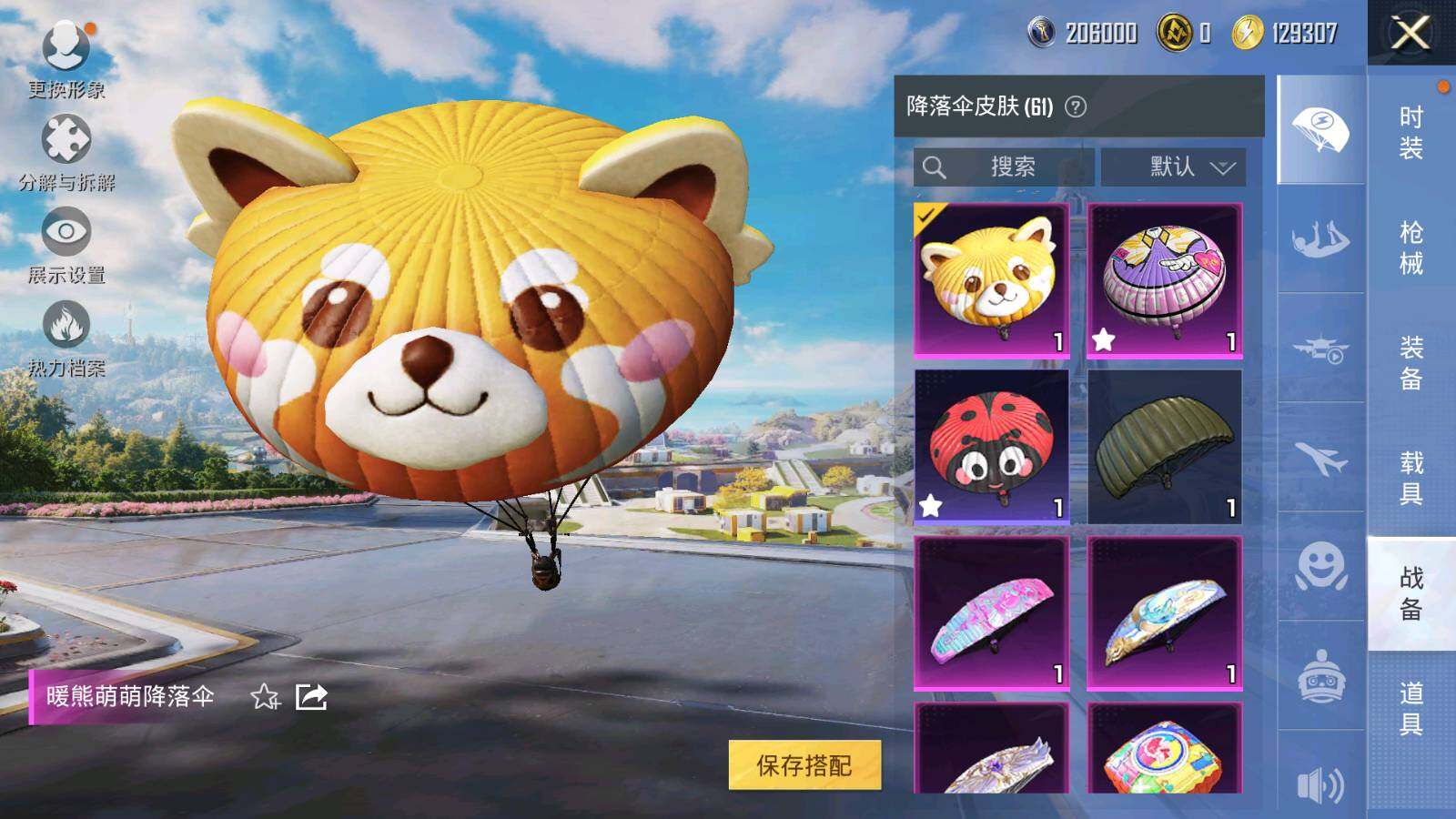 【粉色降落伞】:梦幻火箭降落伞,甜蜜誓约降落伞,橘柚倾心降落伞,暖熊萌萌降落伞,彩虹甜喵降落伞,音爆索尼克降落伞,仲夏莫吉托降落伞,炎氏战神降落伞,闲梦青缨降落伞,炫光之旅降落伞,圣堂之誓降落伞,月影灵韵降落伞