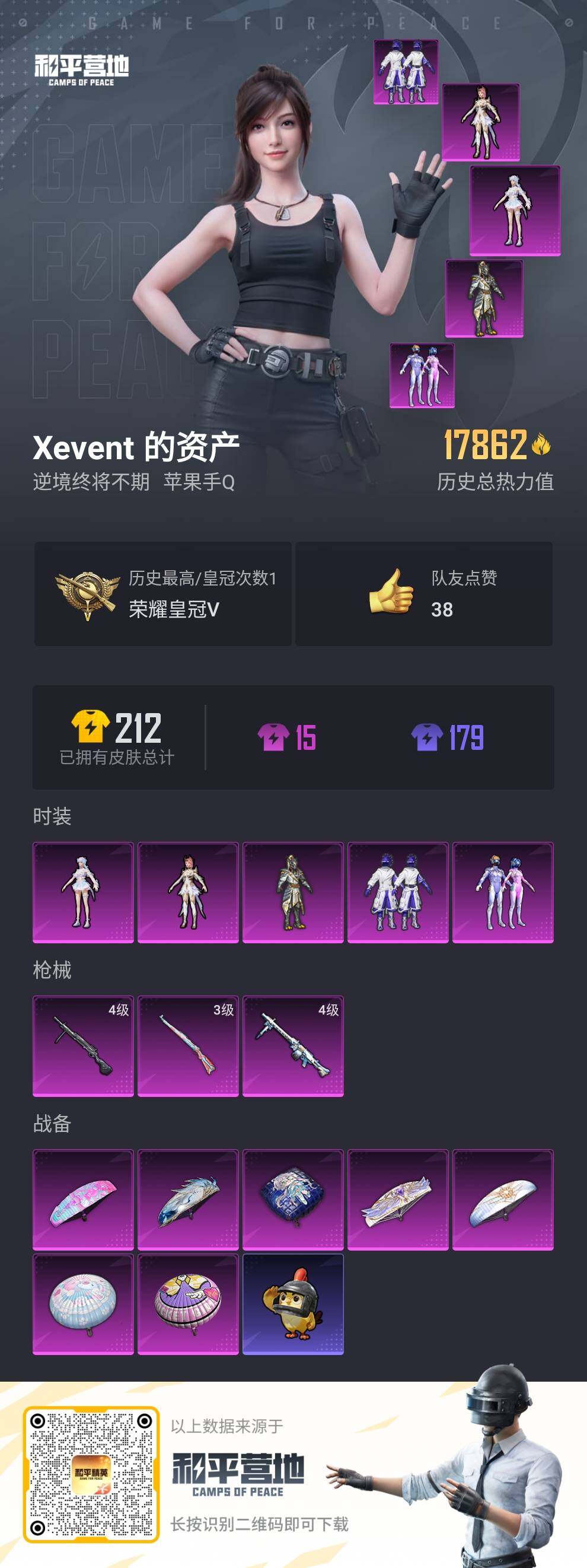 - PX_2070715- 包人脸 安卓手Q-15王牌印记-5粉装-5特效枪-0载具-76950热力值-190套装-242枪皮-0卓越印记-0传奇印记, 【5粉装】,宝贝奶油派,千金淑猫,未来领航者,天启纪元,未来歌姬, 【5特效枪】,AKM-绿萝繁花-5级,SCAR-L-锦绣绵绵-5级,M416-心之恋语-7级,Kar98K-巳巳如意-5级,SPAS-12-音爆索尼克-7级, 【3稀有紫装】,奇异狩
