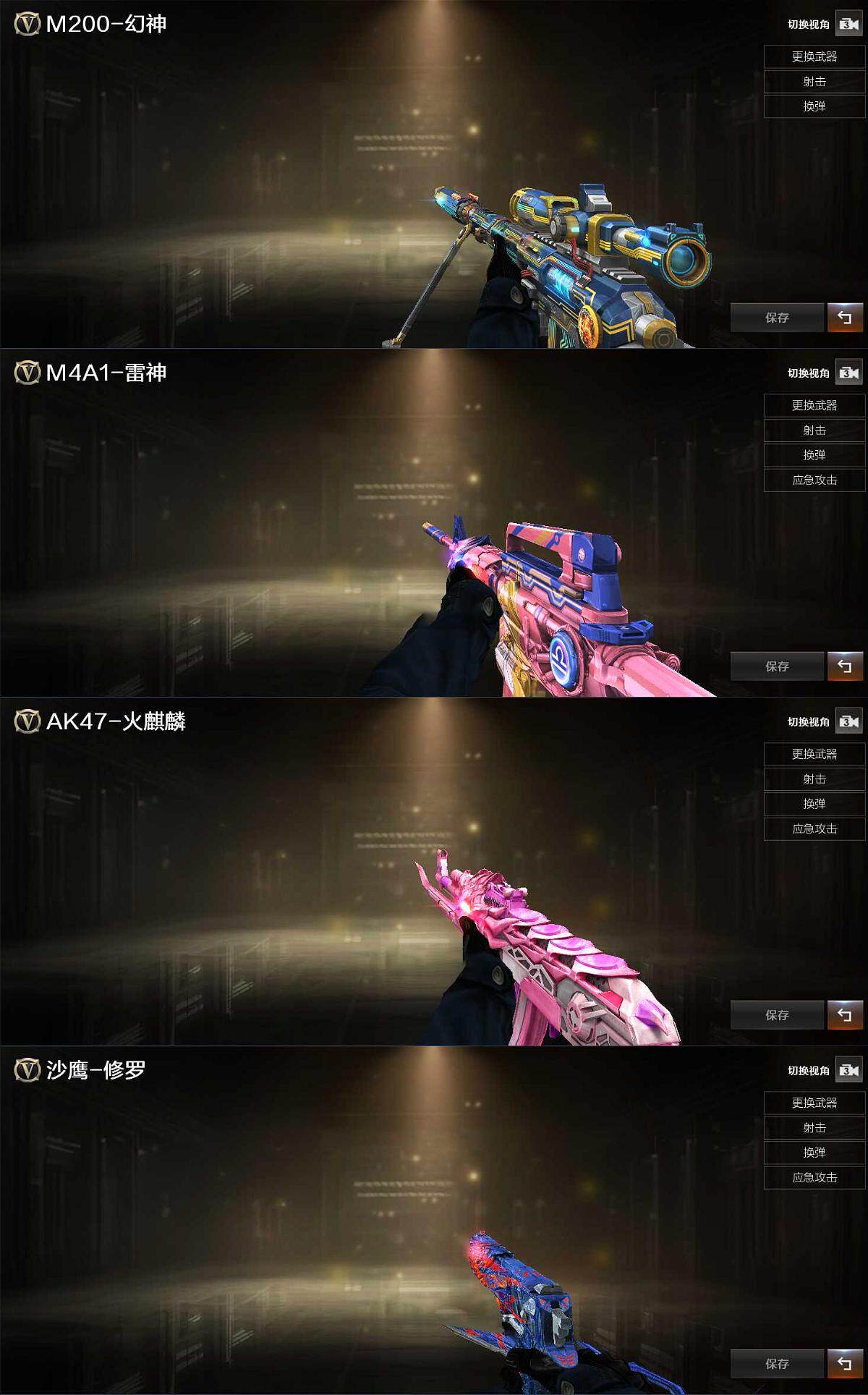 【热门武器】:传说破晓,QBZ03-金色蔷薇,M4A1-青龙,M200-幻神,毁灭-孙三炮,COP 357-幻灵,沙鹰-修罗