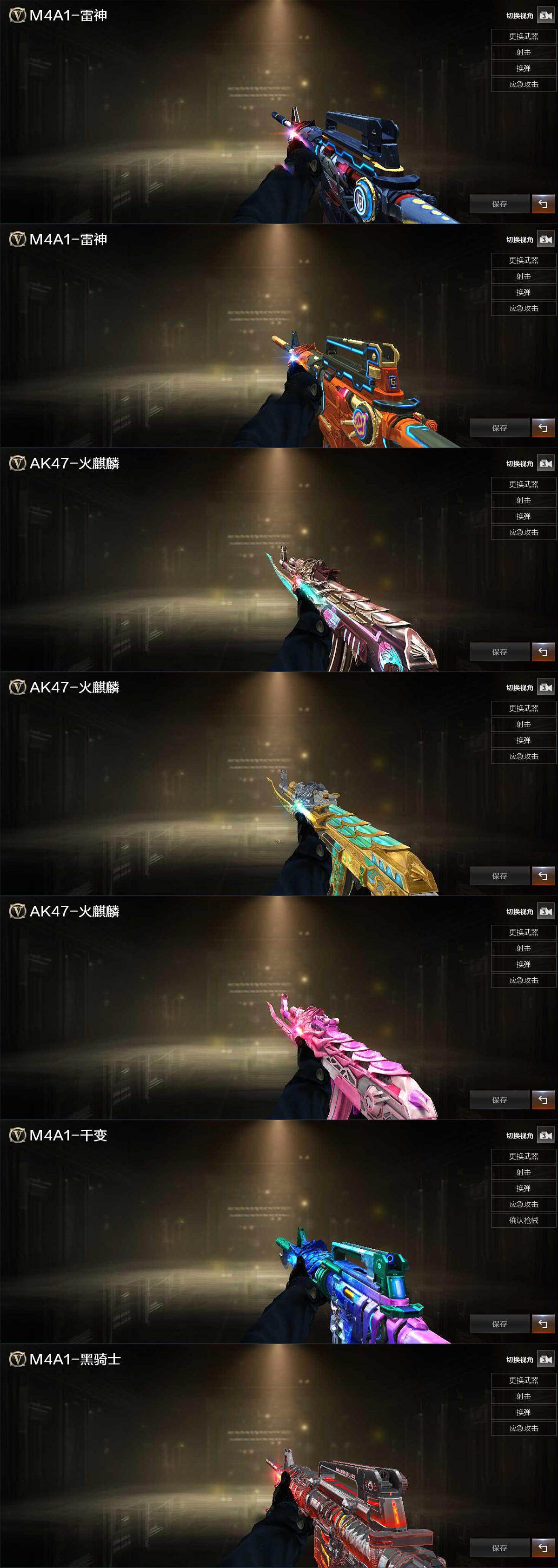 【皮肤】:雷神-R.LGD-CFPLS18冠军,雷神-源计划2.0专属 皮肤,火麒麟-百城,火麒麟-大唐荣光,火麒麟-心动糖果,M4A1-千变-孔明皮肤,黑骑士-暗月