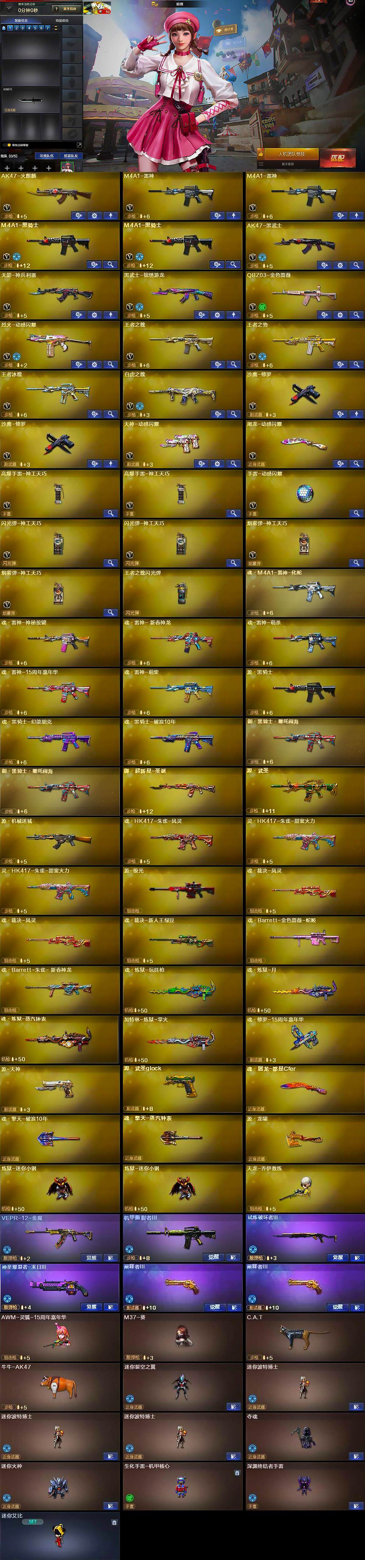 - PX_1995506-实名: 可修改 时装数: 131 枪械数: 165 战备数: 120 热门装扮: 深海小丑鱼,冰霜白皇,新星烈龙,飓风飞鹰,炙焰牛王,激萌罗小黑,软萌银虎,暗夜魅影,烟云彩露 稀有枪皮: MG3洛神天依,SCAR-L梦幻火箭,M762-青锋波束,Kar98K-巳巳如意