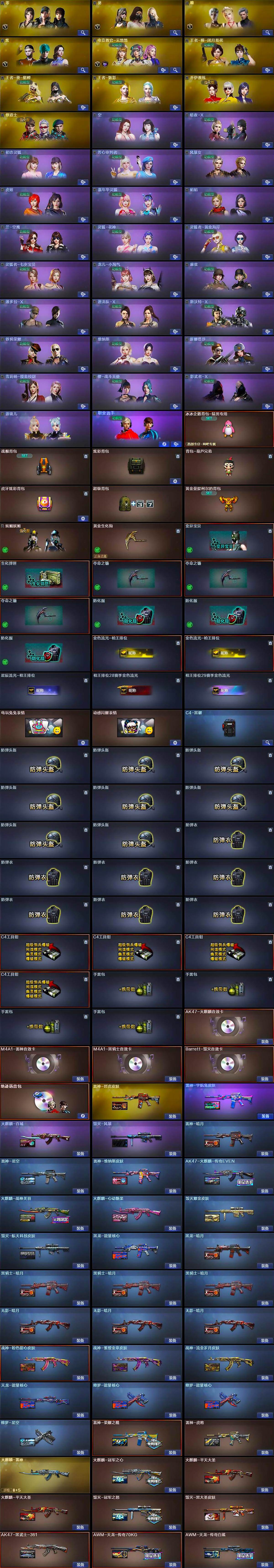 【皮肤】:雷神-暗月,雷神-荣耀之魄,雷神-星空,雷神-虎将,雷神-烈虎皮肤,雷神-宇航兔皮肤,雷神-维纳斯皮肤,火麒麟-雷神,火麒麟-冠军之心,AK47-火麒麟-传奇EVEN,火麒麟-战神关羽,火麒麟-平天大圣*2,火麒麟-百城,火麒麟-心动糖果,毁灭耀金皮肤,毁灭-冠军之怒,毁灭-黑大圣皮肤,毁灭-风暴,毁灭-航天科技皮肤,黑龙-能量核心,黑龙-暗月,黑骑士-暗月*3,无影-暗月*3,AK47-黑武士-361,战神-粉色甜心皮肤,战神-紫绶金章皮肤,战神-流金岁月皮肤,AK47-B-常胜将军-孙权*3,天龙-能量核心,AWM-天龙-传奇70KG,AWM-天龙-传奇白鲨,修罗-能量核心*2,修罗-星空