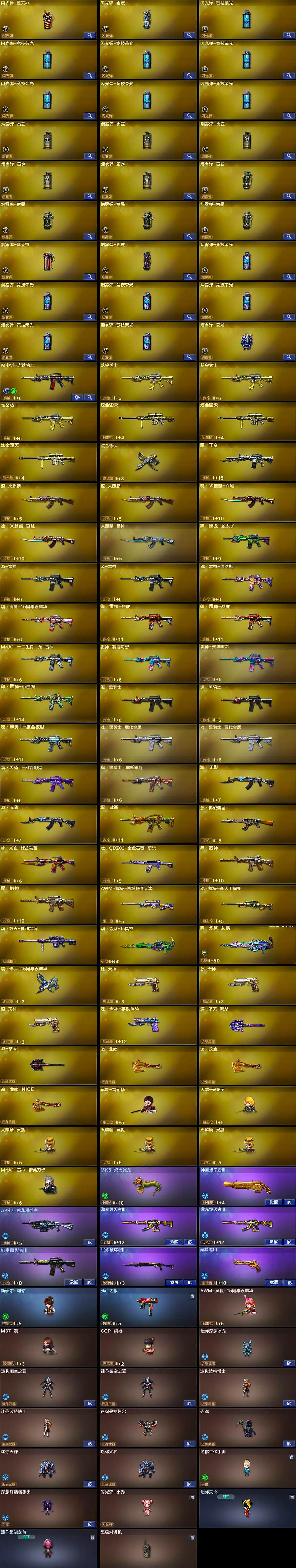 【热门武器】:传说暗裔,QBZ03-金色蔷薇,Scar Light-白虎,HK417-朱雀,M200-竞技荣光,死亡之眼,白虎-电玩蓝兔,Kar98K-星神,M4A1-黑骑士*5,汤姆逊-烈龙*9,RPK-盘龙*7,加特林-炼狱*5,斯泰尔-蝴蝶,MK5-炽火炎龙,羊驼玩偶,裁决-雪莉杨,USP-雷暴,COP-堕天神,沙鹰-修罗*3
