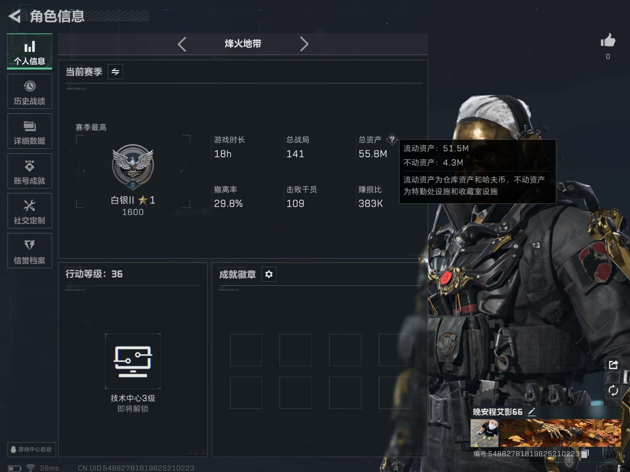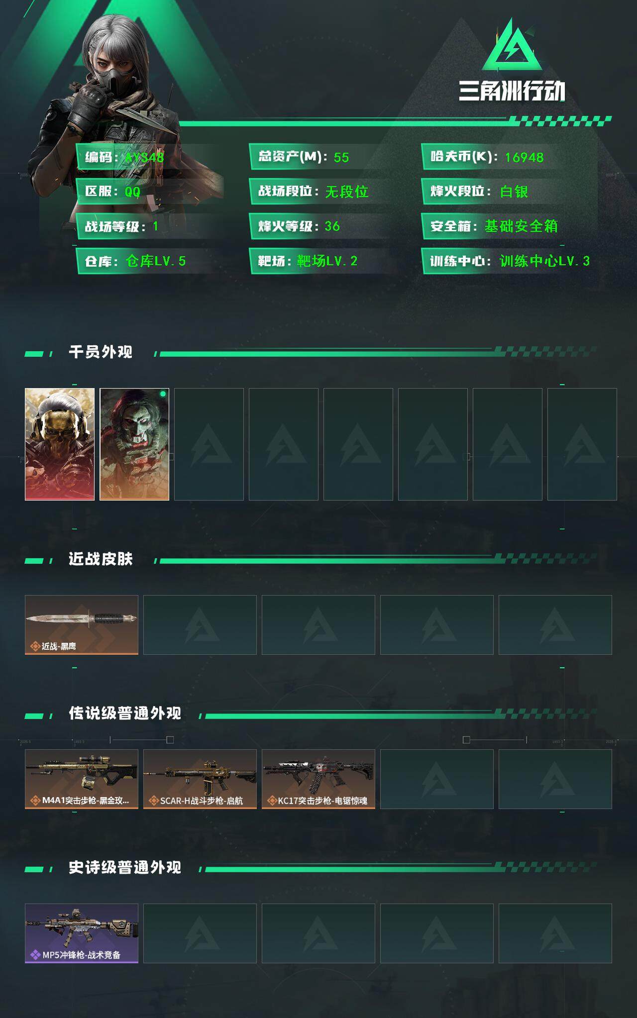[13946071]可直接换绑 总资产55m 16948k哈伏币-55m流动资产-36烽火等级-白银-1战场等级-无军衔