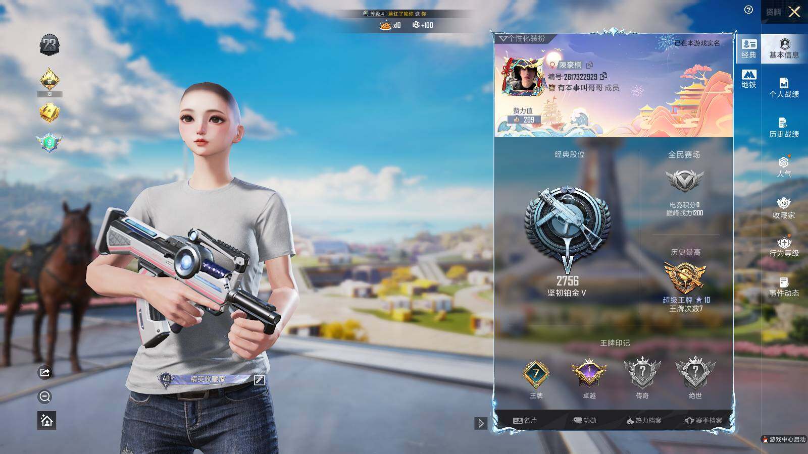 - [12025534]总资产:354.3M 1近战传说 12传说枪械 哈夫币:1.466K 顶级安全箱(3×3)9.15号到期 可二次 可修改实名 优质装备:近战-北极星,顶级安全箱(3x3) 烽火地带段位:黑鹰 全面战场段位:列兵 传说武器皮肤:SMG45冲锋枪-骑士,M4A1突击步枪-阿米娅,CAR-15突击步枪-阿米娅,复合弓-黑-天际线,AWM狙击步枪-捞点薯条,QCQ171冲锋枪-北极星,腾龙突击步枪-捞点薯条,93R-捞点薯条,勇士冲锋枪-能天使-午夜邮差,725双管霰弹枪-送葬人-无题密令,K437突击步枪-北极星