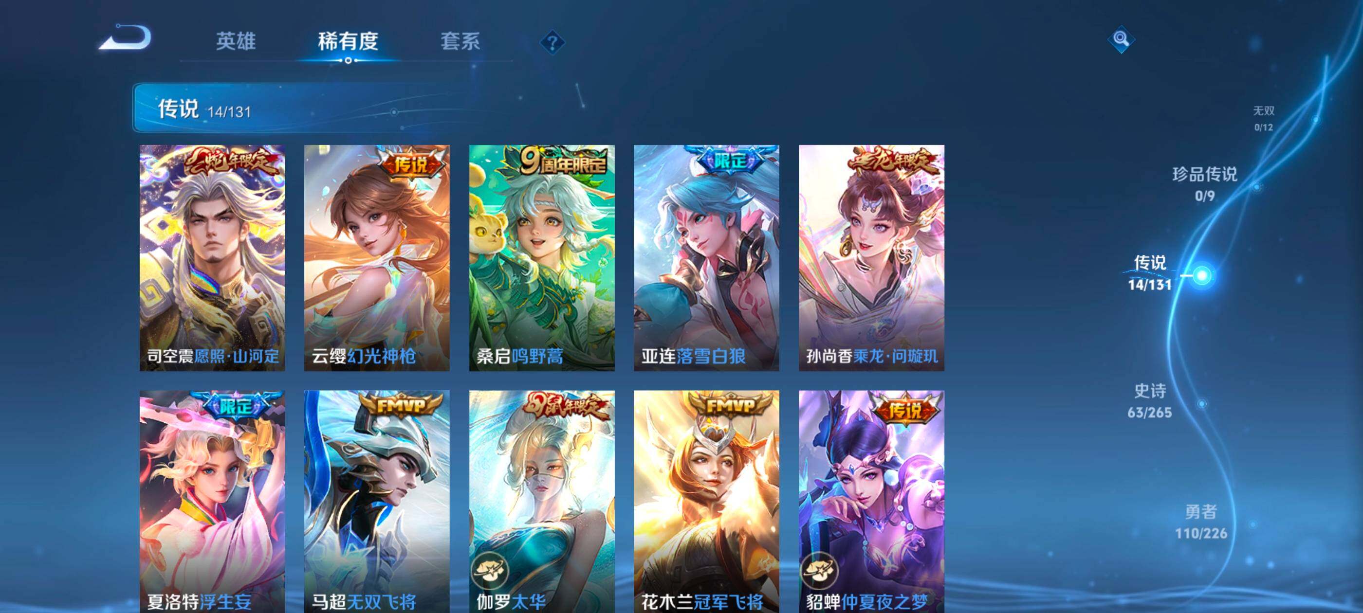- [36997]英雄数: 12 皮肤数: 2 稀有英雄: 武则天,嬴政,韩信