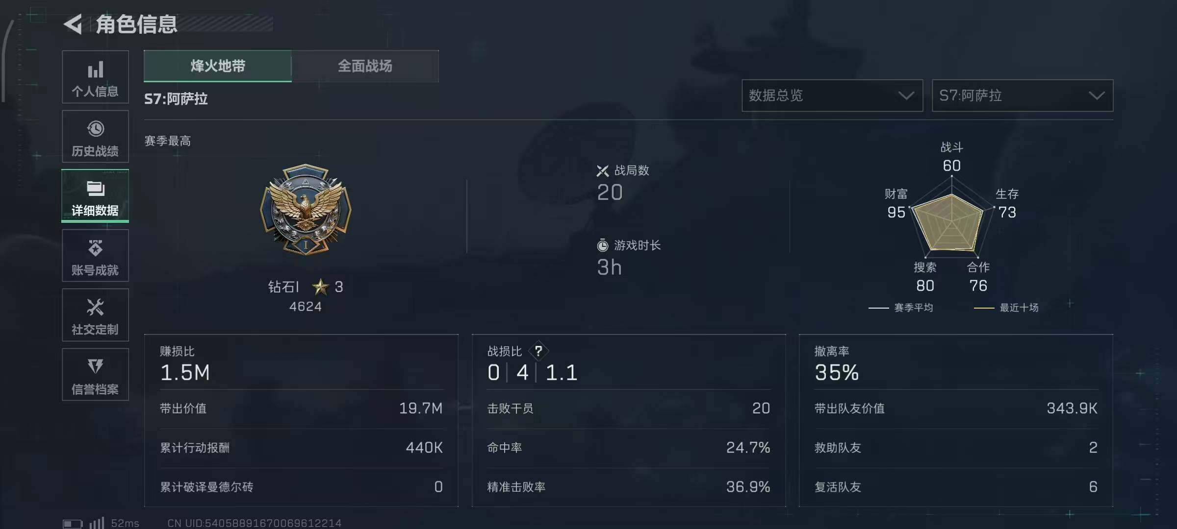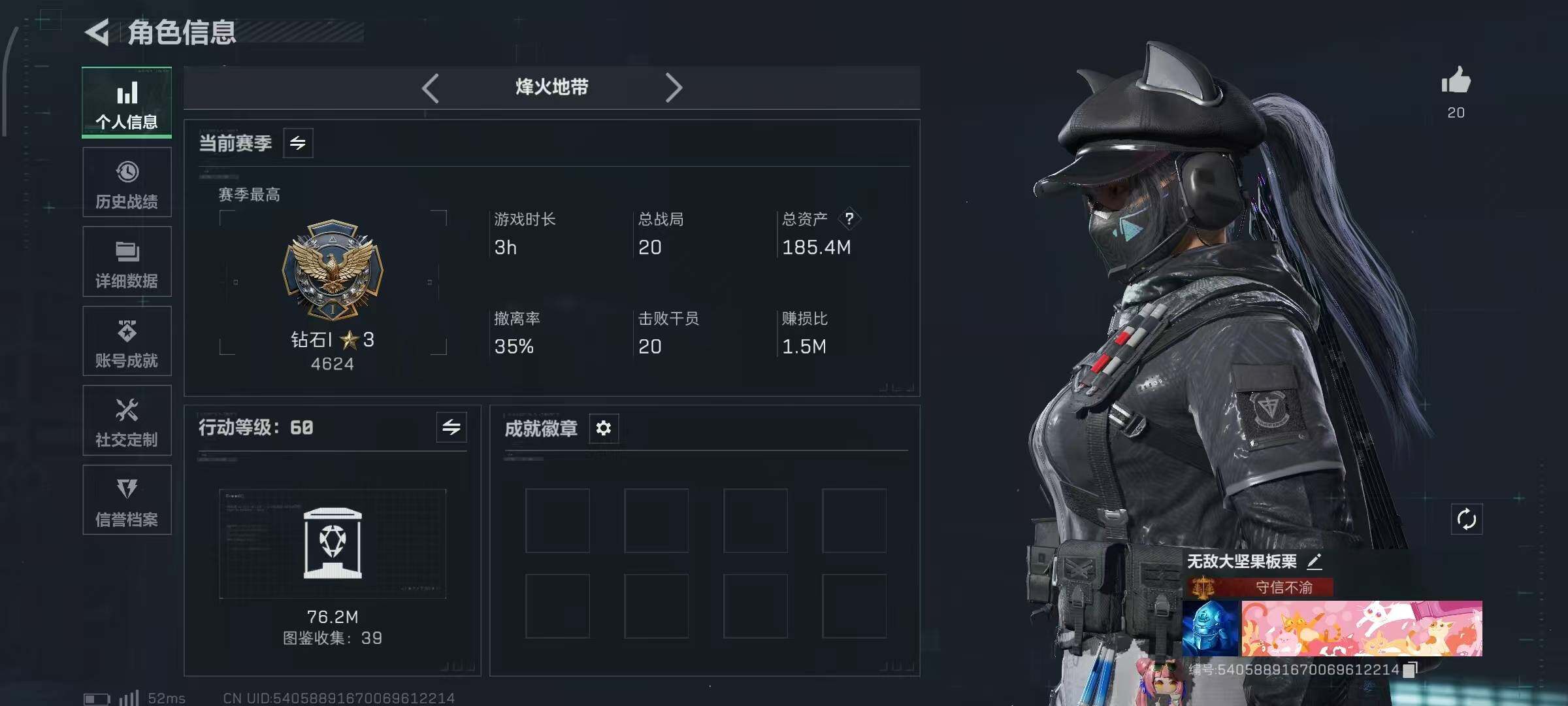 [13946586]可秒换绑 总资产185m 5631k哈伏币-185m流动资产-60烽火等级-钻石-24战场等级-上等兵