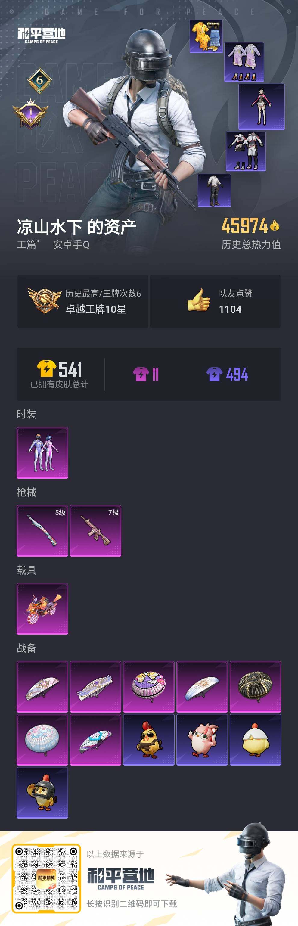 - PX_2065184- 苹果手Q-9王牌印记-有战神框-1粉装-3特效枪-1载具-44610热力值-101套装-153枪皮-0卓越印记-0传奇印记 【1粉装】,智耀战神 【3特效枪】SCAR-L-金蛇镇世-3级 AUG-暖羊咩咩-5级 Kar98K-巳巳如意-5级 【1红装】,金蛇镇世-烛九/2级, 【3稀有紫装】,Mark.06,雪山精英,龟仙人, 【1稀有载具】,护世瑞兽, 【101稀有时装