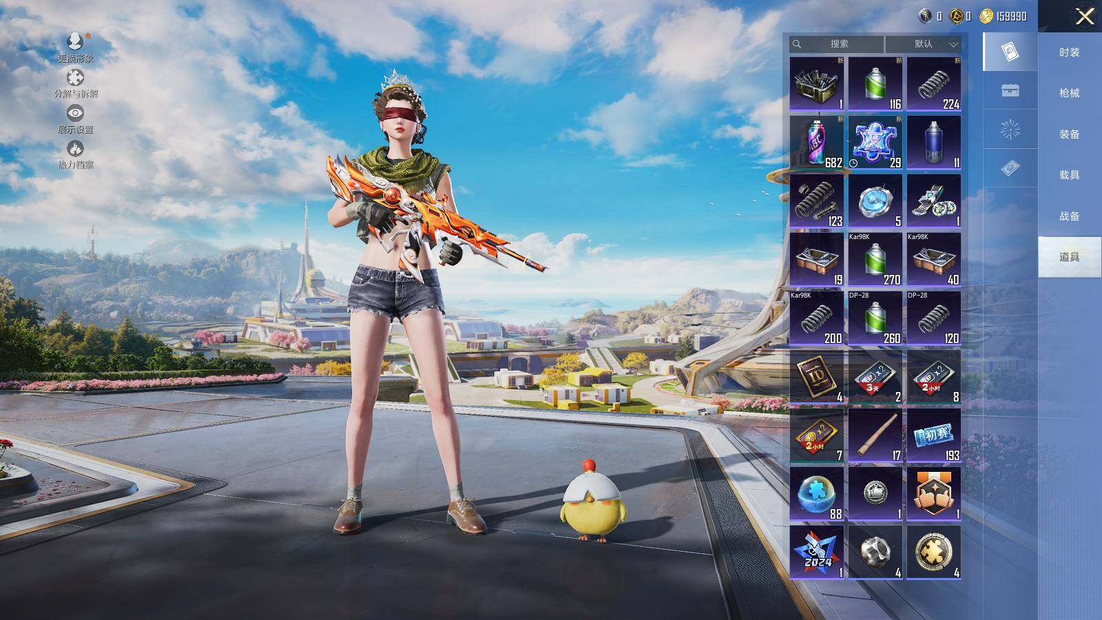 AKM-绿萝繁花,M416-至情至圣,GROZA-镜光银凌,AUG-暖羊咩咩,UMP45-量子极限,Kar98K-巳巳如意
