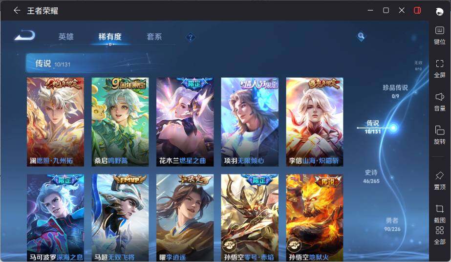- [12147950]V9 3典藏 1珍品传说 29传说 125英雄 408皮肤 可修改实名 优质装备:无限飓风号(高达),鸣剑·曳影,弑枪猎影(韩信典藏),朽木白哉,黄金狮子座,黄金射手座,炽阳神光,一念神魔,云霓雀翎,末日机甲-孙尚香(绿蚂蚱),地狱火,仲夏夜之梦(大飞蛾),地狱之眼,超时空战士-狄仁杰,无双飞将,山海·炽霜斩(李信年限),浮生妄,妄想奇谈,霜月吟,澜逐花归海 传说皮:貂蝉曦玄引 珍宝阁皮:优雅恋人,玩趣恶龙 限定皮:愿照·山河定(司空震年限),愿照·千秋盛(女娲年限),至尊宝,白虎志(电光耗子),凤求凰(白切鸡),太华(伽罗年限),梅西,傲雪梅枪,绯月行,时之彼端,白晶晶,时雨天司(水龙头),遇见飞天,高山流水,怒海麟威,五谷丰年,青龙志(铠年限),冰锋战神,游园惊梦,梁祝,天狼狩猎者,逐梦之翼,李小龙,逐梦之影,逐梦之光,玄武志(苏烈年限),朱雀志(守约年限),永曜之星,辉光之辰,圣诞老人,一生所爱,大圣娶亲,引擎之心,冰霜恋舞曲,云端筑梦师,神奇女侠,寅虎·心曲(虎婆),寅虎·赤拳(老虎年限),玉兔公主,深海之息(深海大菠萝),唐三藏 史诗皮:鸭鸭历险记-刘禅,飞车小橘子,器灵·浮梦炉,化蝶舞,灵蛊蚀心,星界战将,龙之律动,石田雨龙,百相守梦-周瑜,茶境仙,炽弈燎原,破空之剑,战舞者,东方月初,蔬乡物语(鲁班七号),乘龙·忆丹青(大乔年限),紫霞仙子,苍穹之光,电玩小子(小书包),白龙吟,黄金分割率,特工魅影,千年之狐,魅语,高渐离燃音魔法,无限星赏官,冰冠公主,青蛇,偶像歌手,白蛇,晚萤,暗夜猫娘,龙骑士(小龙虾),末日机甲-吕布,猫狗日记-孙策,猫狗日记-大乔,乱世虎臣,节奏热浪,修罗,女仆咖啡,摇滚巨星,水果甜心,绅士熊喵,天才门将,星夜王子,心灵骇客,功夫厨神,德古拉伯爵,暗隐猎兽者,幽灵船长,鬼剑武藏,暗渊魔法,心灵战警,乐园奇幻夜,舞动绿茵,地狱岩魂,诗语江南,纤云弄巧,繁星吟游(呼啦呼啦),缤纷独角兽,乘风破浪,逐浪之夏,月团寄思,水晶猎龙者,曙光守护者,箭羽风息,金属风暴,原初追逐者,圣诞狂欢,圣诞恋歌,鹰眼统帅,暗夜贵公子,魅力维加斯,黎明之约,赏金猎手,奇遇舞章,天秀·音浪,滕王阁序,顽趣-阿古朵,无心,未来纪元-赵云